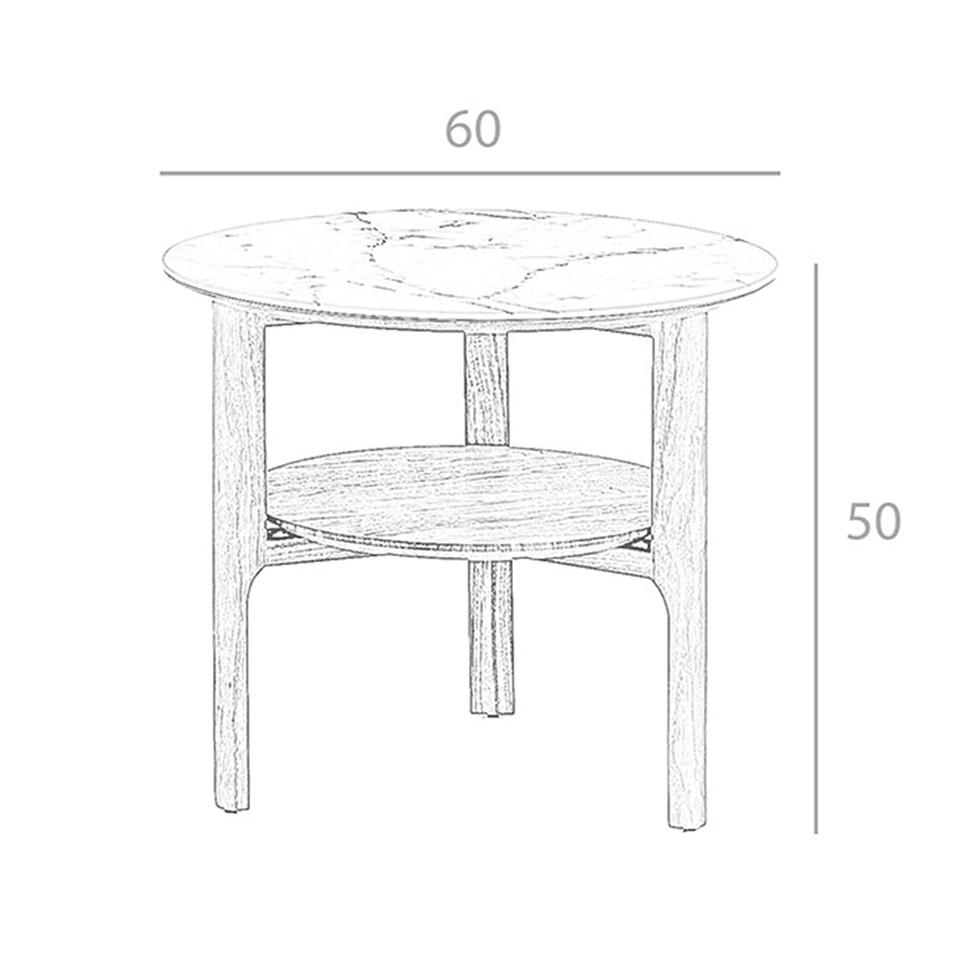 Mesa rincón redonda mármol porcelánico y nogal modelo 2047 Angel Cerdá S.L.Mesa rincón redonda de diseño moderno con tapa de mármol porcelánico blanco con vetas en color gris en acabado brillo y unas originales patas de madera chapada en nogal natural. Una pieza con un diseño sencillo a la vez que original, con la que aportará un toque único y personal.Medidas del producto: Ø60 x 50 cm.- La original tapa de esta mesa auxiliar en mármol porcelánico blanco con mallado en tonalidades grises, aportará amplitud y luminosidad, así como el toque elegante y sofisticado que busca para su salón. – La elegante estructura de patas de madera chapada en nogal natural de 0,5 mm de espesor de esta mesita, es perfecta para crear un ambiente moderno y repleto de estilo. – Tanto por su diseño como por su estilo moderno, le permitirá crear un ambiente repleto de vanguardia y sofisticación. – Versátil y funcional, su diseño permite que encaje en cualquier ambiente, convirtiéndose en un elemento clave de la decoración de su hogar.