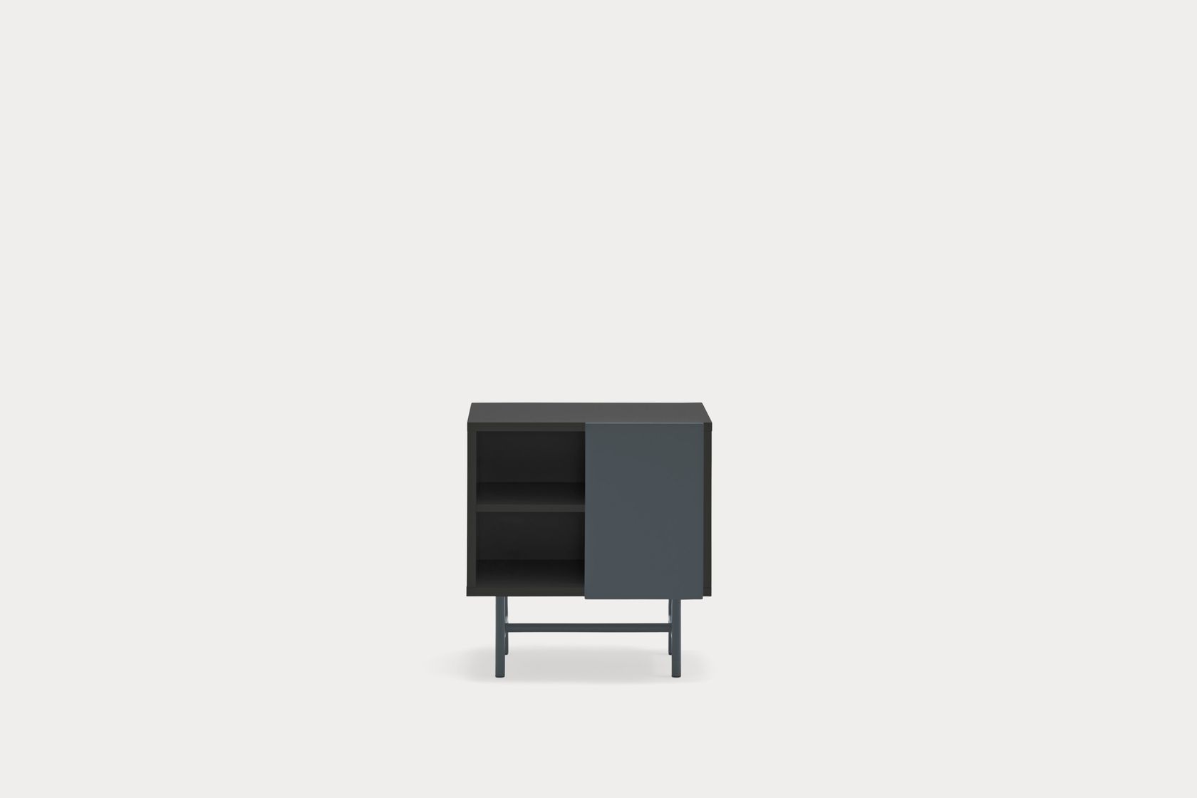 Nube es una mesilla de noche de MDF lacado con puerta corredera.La collection Nube se démarque par sa configuration unique et distinctive grâce à sa porte coulissante, qui permet de la placer librement selon les préférences de chacun. La forma en la que esta puerta desliza sobre la colección Nube, revelando y ocultando las distintas secciones de su interior, está inspirada en cómo las nubes se desplazan en el cielo.
