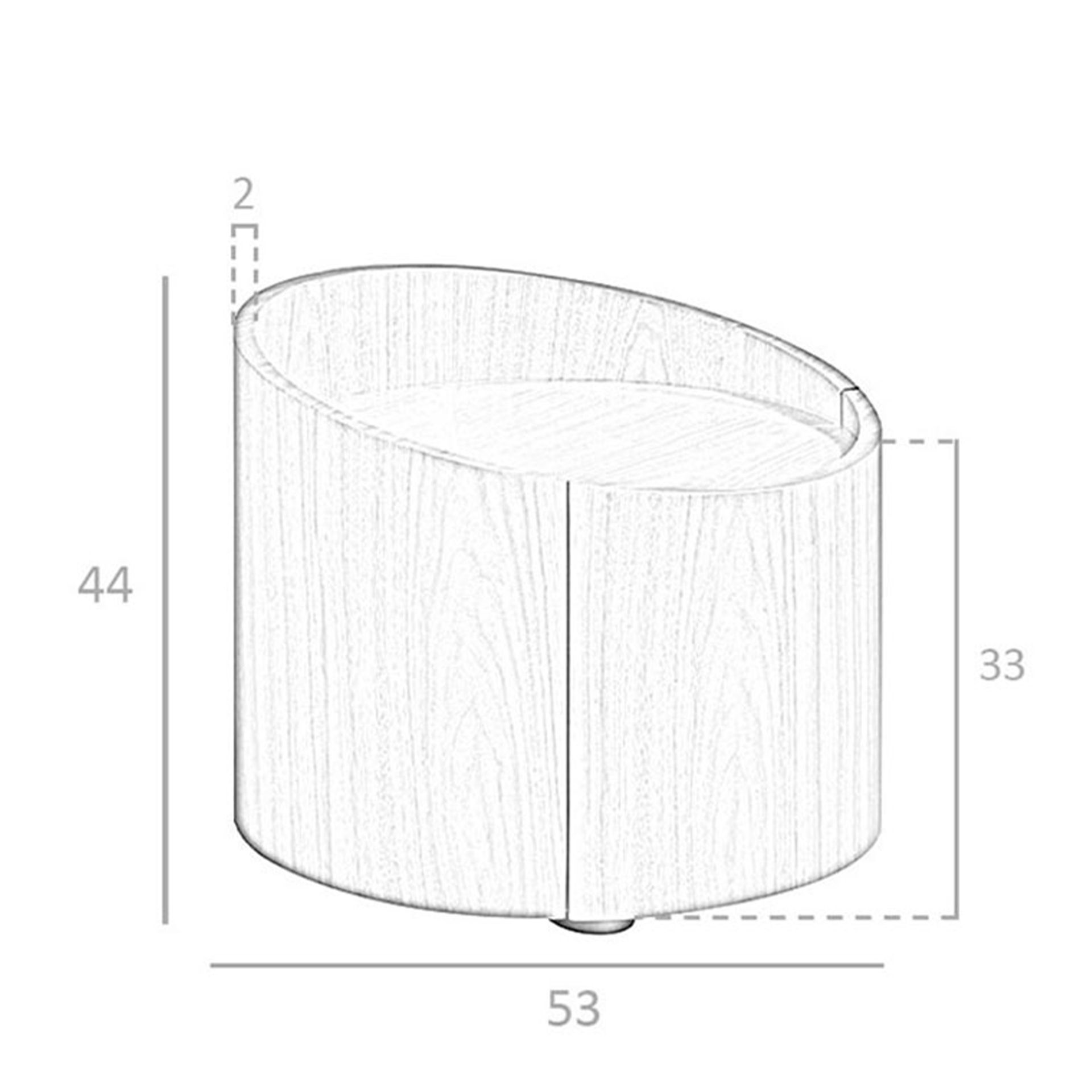 Mesita de noche nogal modelo 7130 Angel Cerdá S.L.Mesita de noche de diseño moderno con estructura de madera chapada en nogal natural. Cuenta con un amplio espacio de almacenaje con 1 cajón con sistema de apertura uñero y cierre soft-closing. Medidas del producto: Ø53 x 44 cm.- Esta elegante mesita de noche de madera chapada en nogal natural de 0,5 mm de espesor, aportará el toque diferente y moderno que busca para su dormitorio. – Versátil y funcional, su diseño permite que encaje en cualquier ambiente, convirtiéndose en un elemento clave de la decoración de su hogar. – Tanto por su tamaño como por su gran espacio de almacenaje es ideal para mantener todo en orden y en su sitio.
