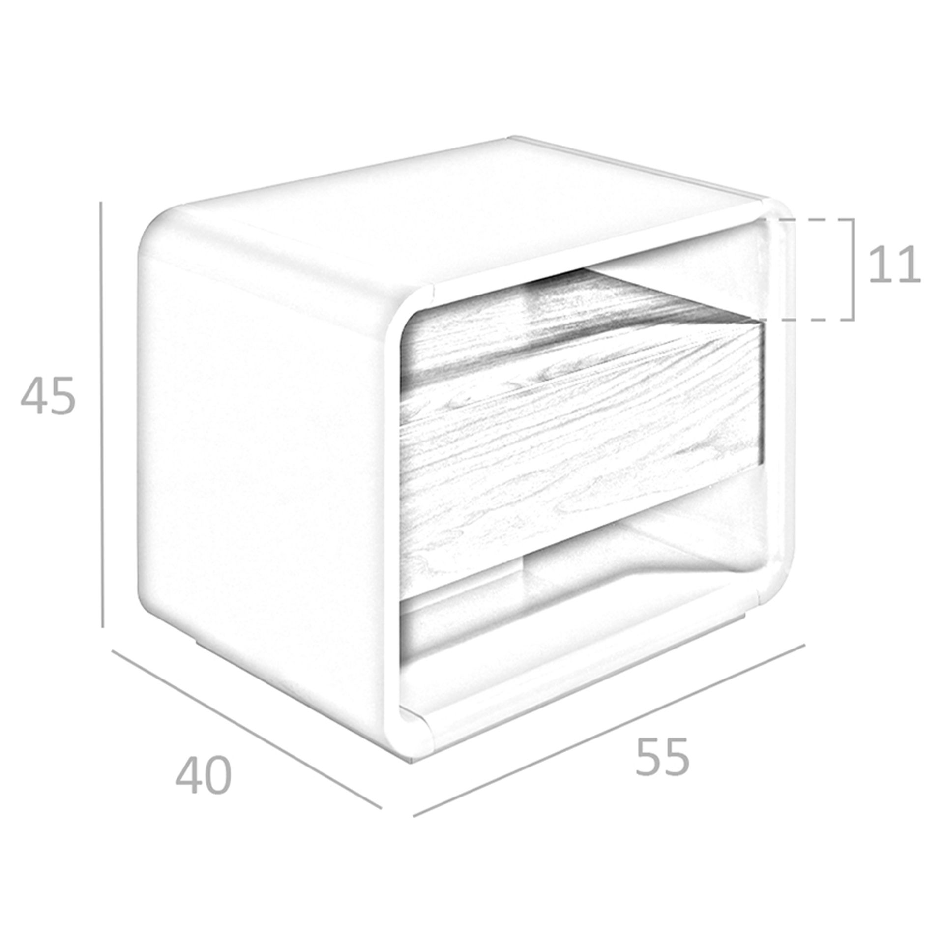 Mesita de noche nogal y madera gris modelo 7134 Angel Cerdá S.L.Mesita de noche de diseño moderno con estructura de madera chapada en nogal natural y una original base de madera de MDF color gris. Cuenta con un amplio espacio de almacenaje con 1 cajón con sistema de apertura uñero y cierre soft-closing. Medidas del producto: 55 x 40 x 45 cm.- Gracias a su acabado lacado, esta mesita de noche es ideal para crear un ambiente con carácter y personalidad, sin dejar de lado la parte más funcional y práctica para el día a día. – Versátil y funcional, su diseño permite que encaje en cualquier ambiente, convirtiéndose en un elemento clave de la decoración de su hogar. – Tanto por su tamaño como por su espacio de almacenaje es ideal para mantener todo en orden y en su sitio. – Su cajón de madera chapada en roble de 0,5 mm de espesor, brindan el toque perfecto de color a este mueble auxiliar.