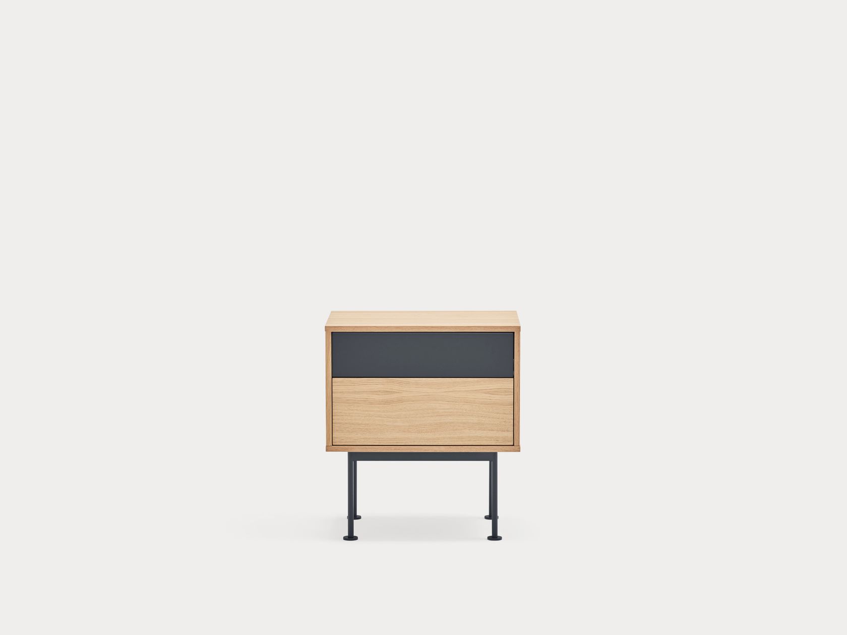 Yoko está realizado en chapado de roble a excepción de los frontales de color, hechos en MDF lacado. Las patas son metálicas y están lacadas en el mismo color que los frontales.Yoko is a collection that aims, through its simplicity and versatility, to offer a modern furnishing solution suited to the needs of contemporary homes.