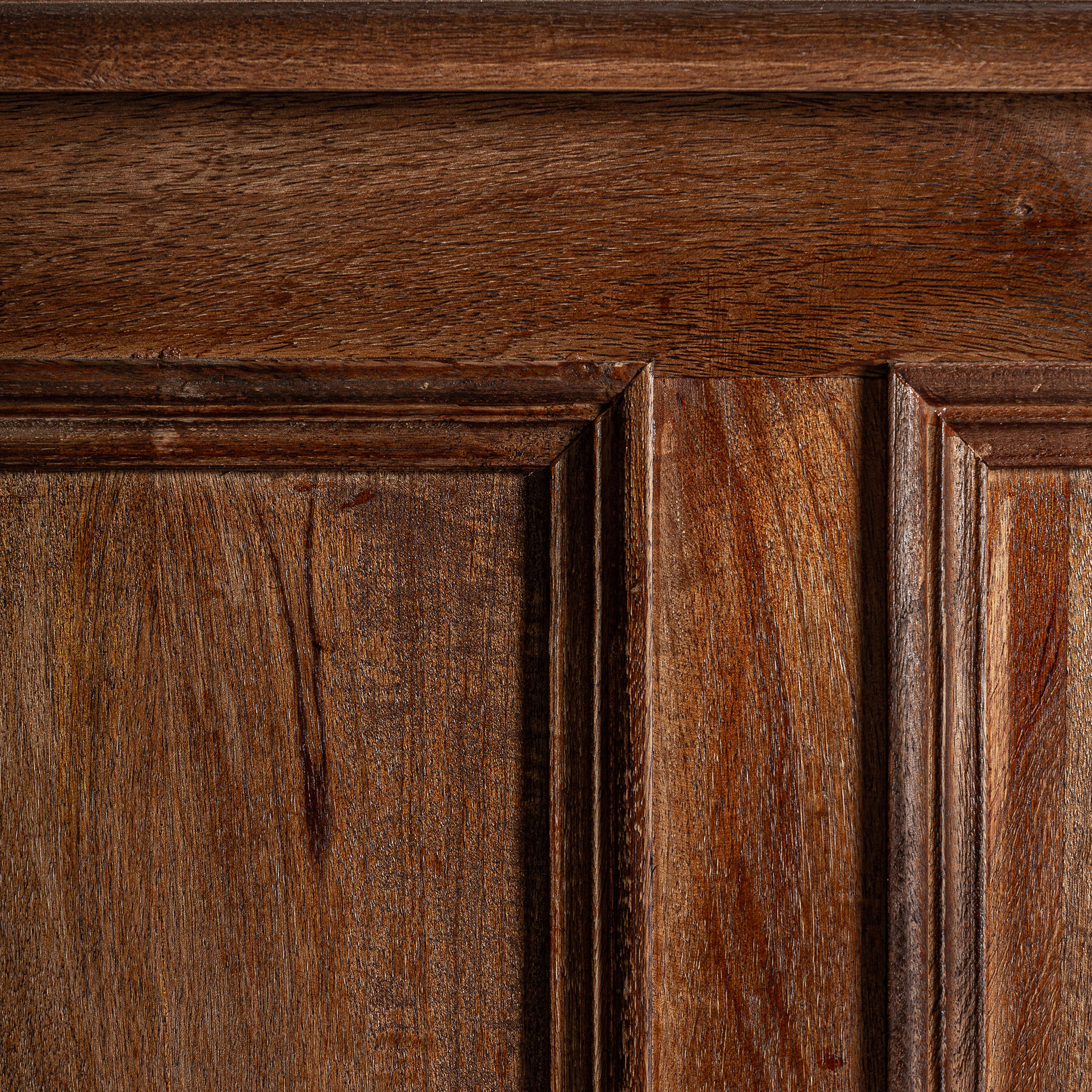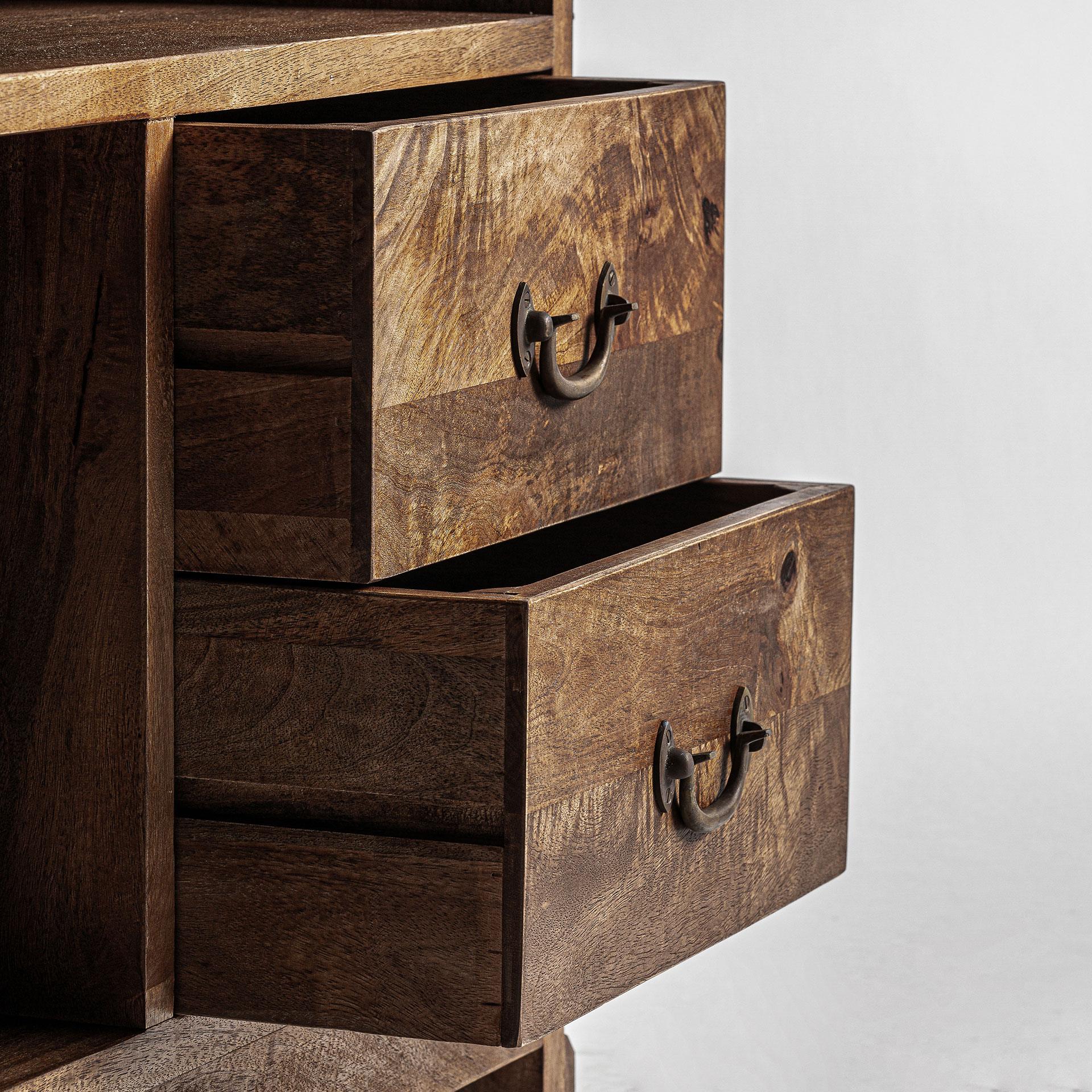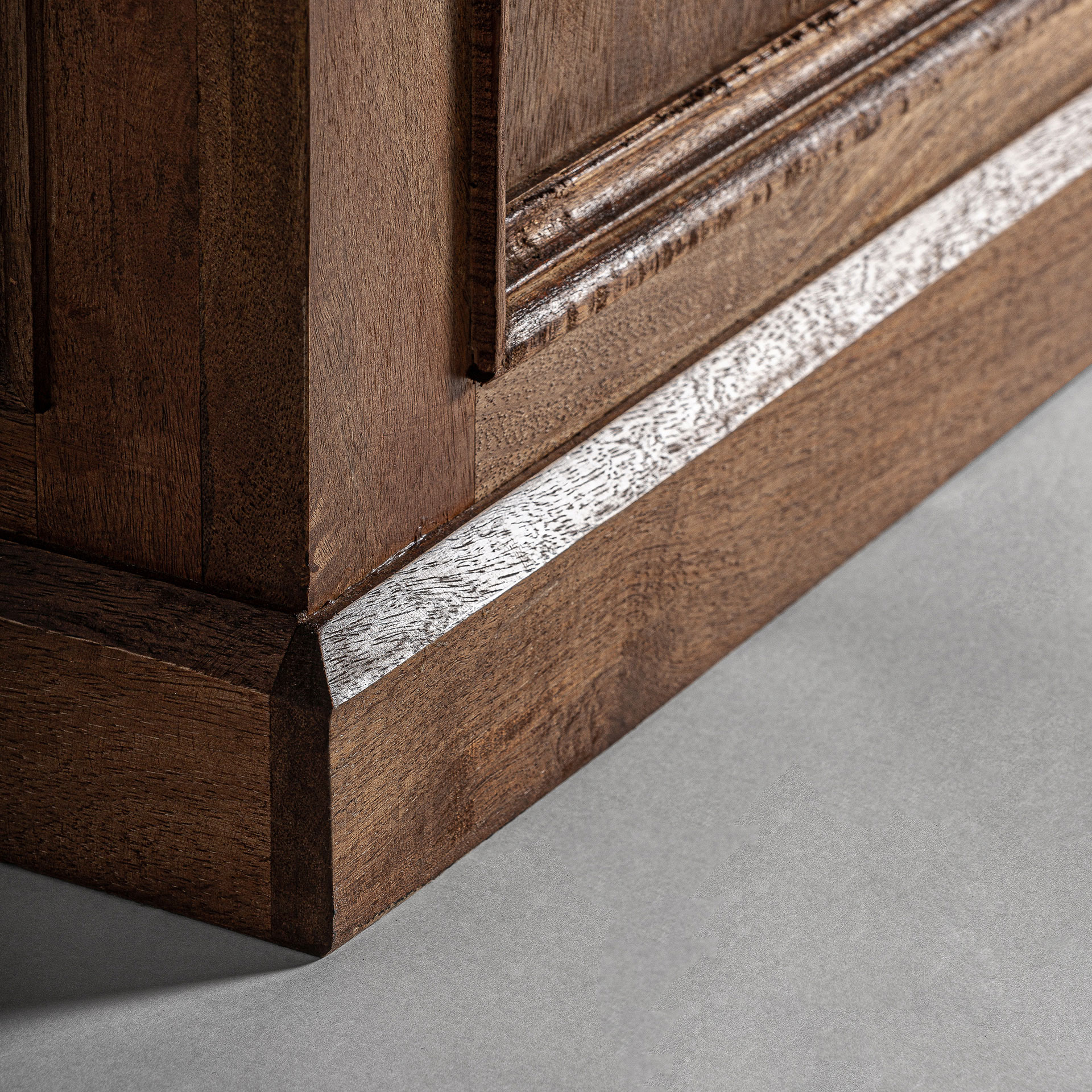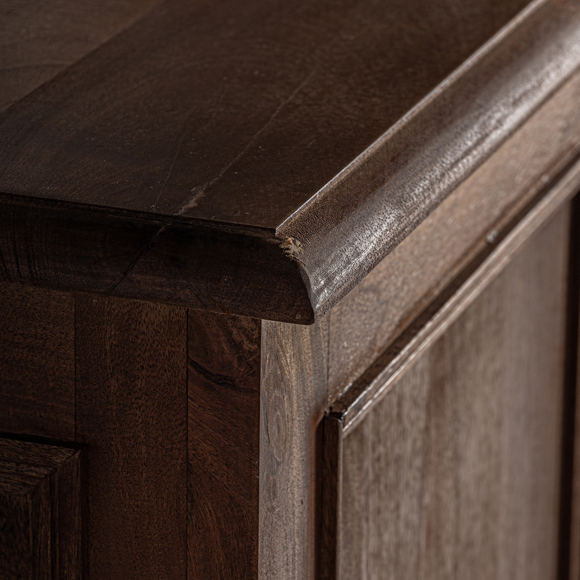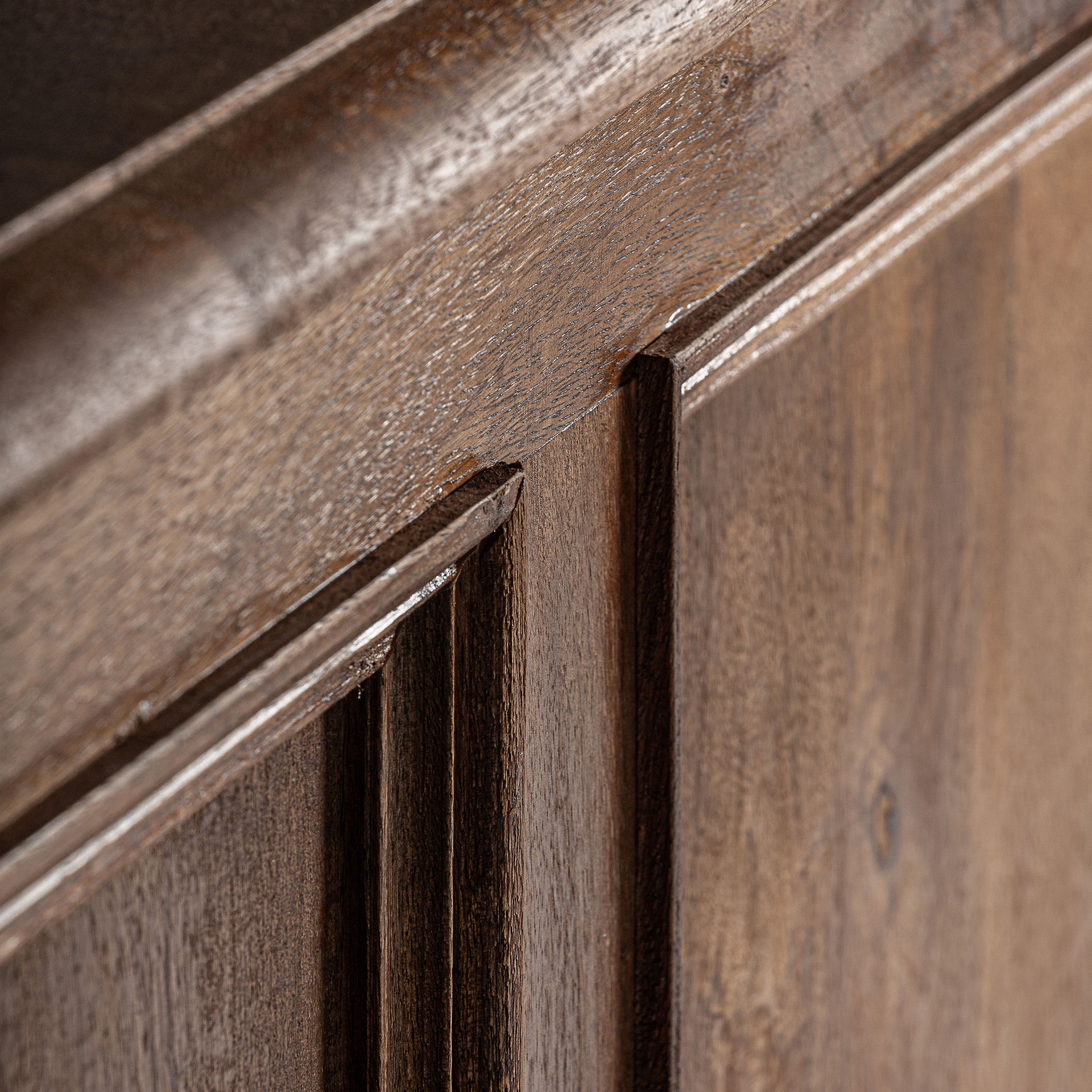 Mostrador agen de estilo colonial fabricado en madera de teka reciclada en color marrón.