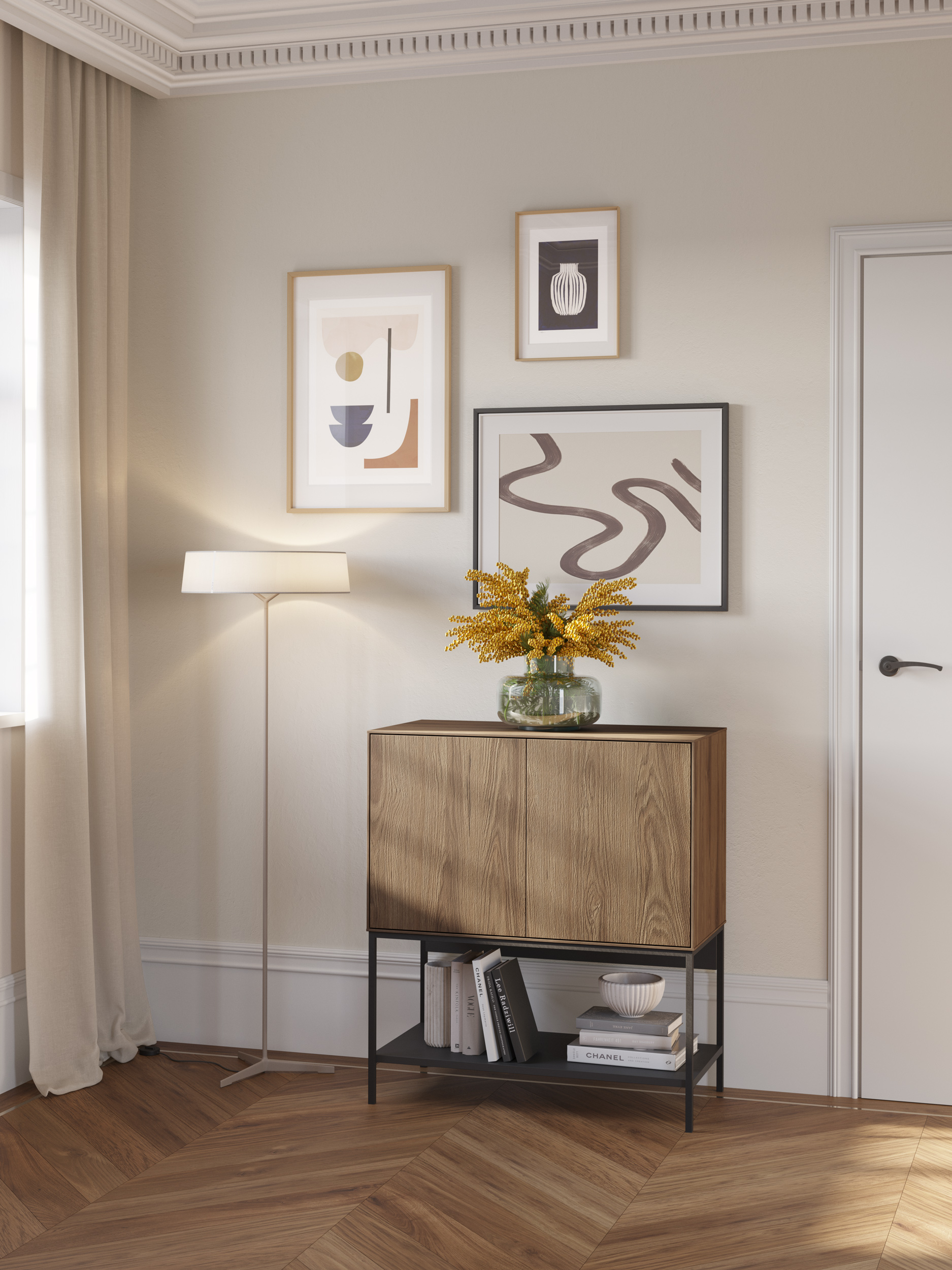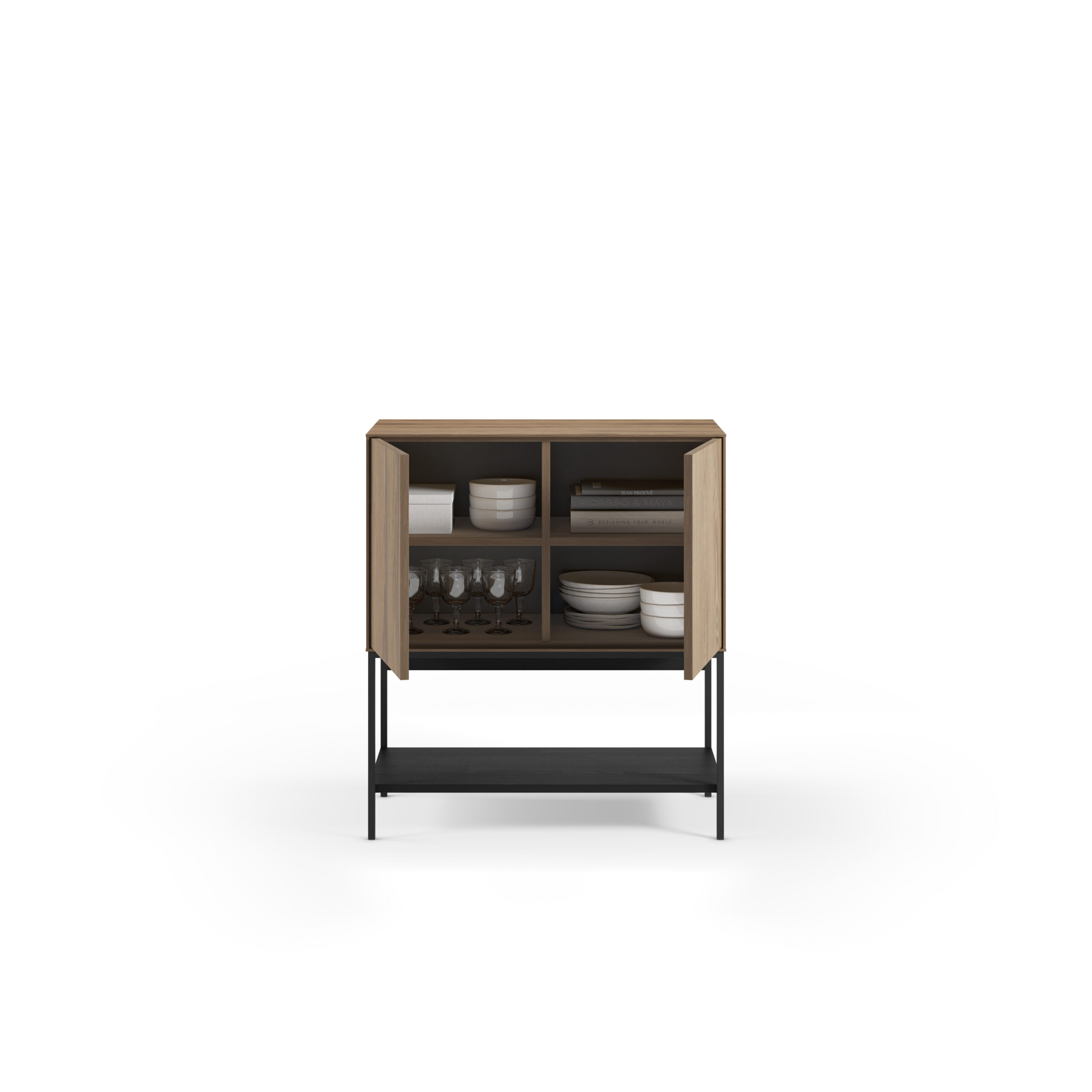 MUEBL.AUX. AMIRA 2P ROBLE-UD/NEGRO MELAMINA/METAL