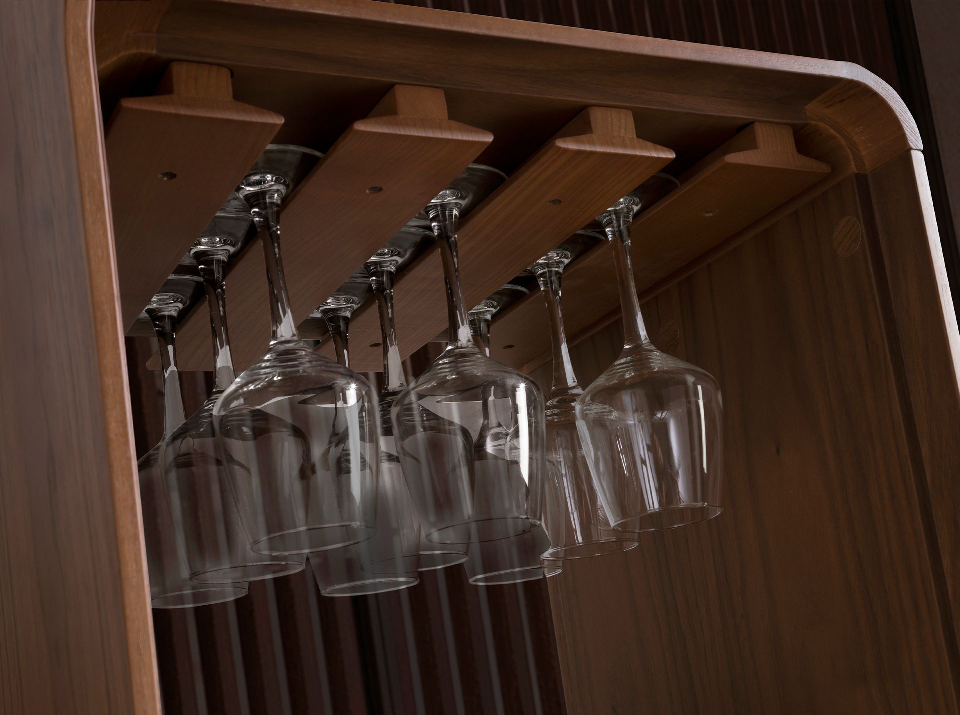 Mueble bar giratorio nogal | – Material principal: Madera chapada en nogal natural de 0,5 mm de espesor