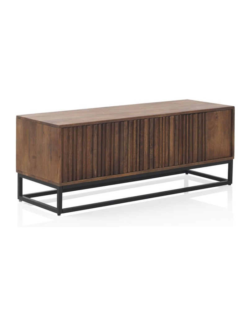 MUEBLE TV 3 PUERTAS LAMINADAS MADERA MACIZA DE MANGO, BASE METAL NATURAL