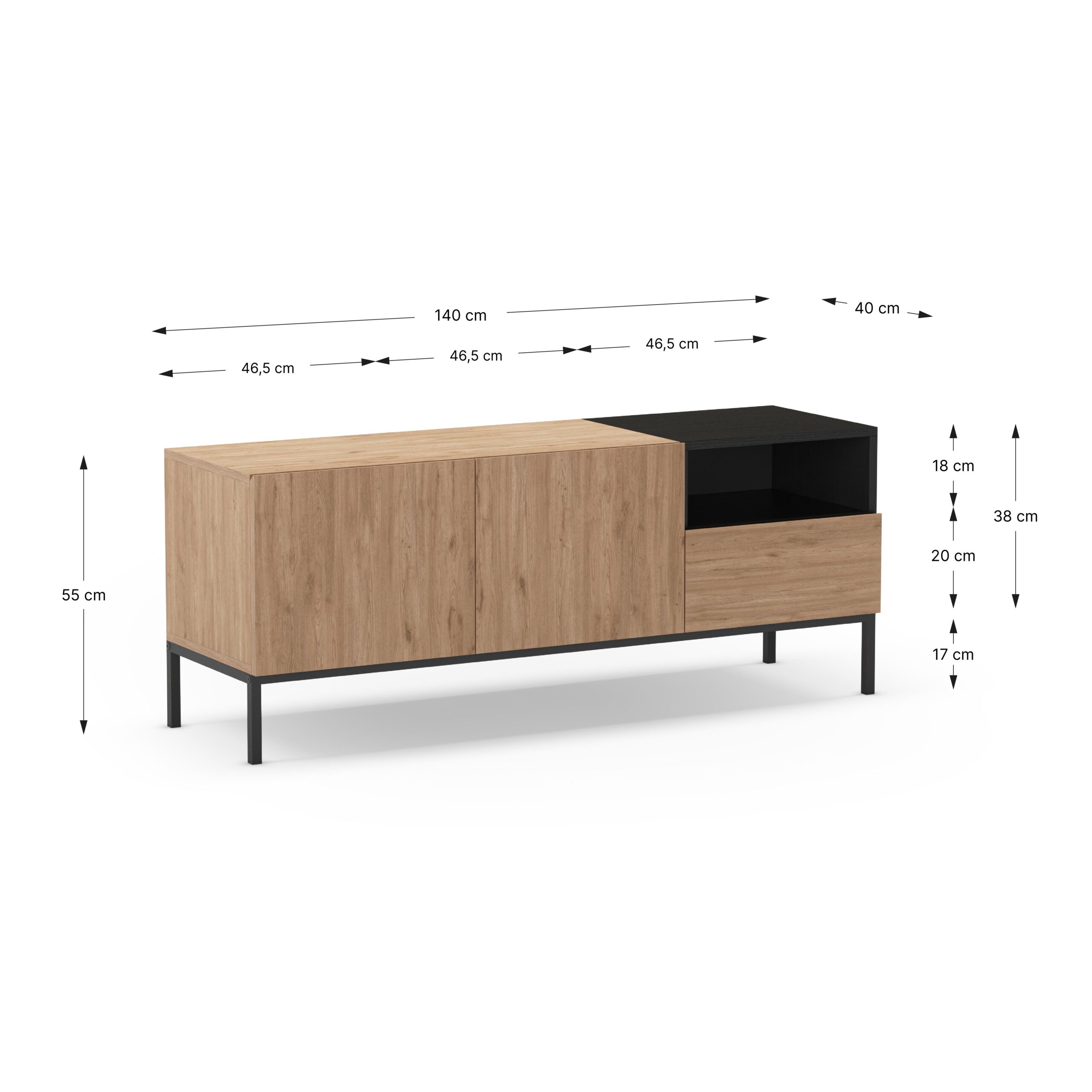 MUEBLE TV CAILIN 2P1C1H 140CM SEPET/NEGRO MELAMINA/METAL