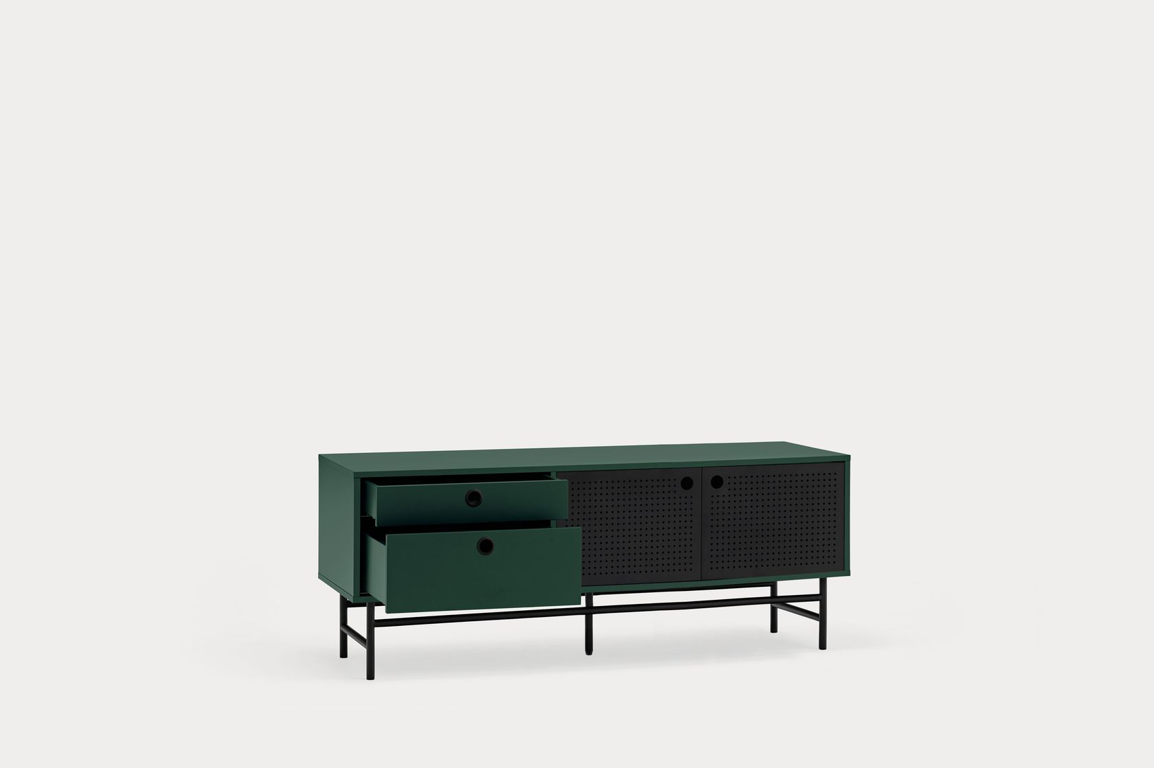 12746_TE 2D4DR Dark GreenDe marcada inspiración industrial la colección Punto combina estos conceptos estéticos con el diseño y funcionalidad. Las puertas metálicas perforadas aportan a esta serie un carácter exclusivo y con personalidad. De líneas limpias, estas prácticas piezas rescatan la fuerza del vanguardismo industrial para adaptarse a los espacios más actuales.