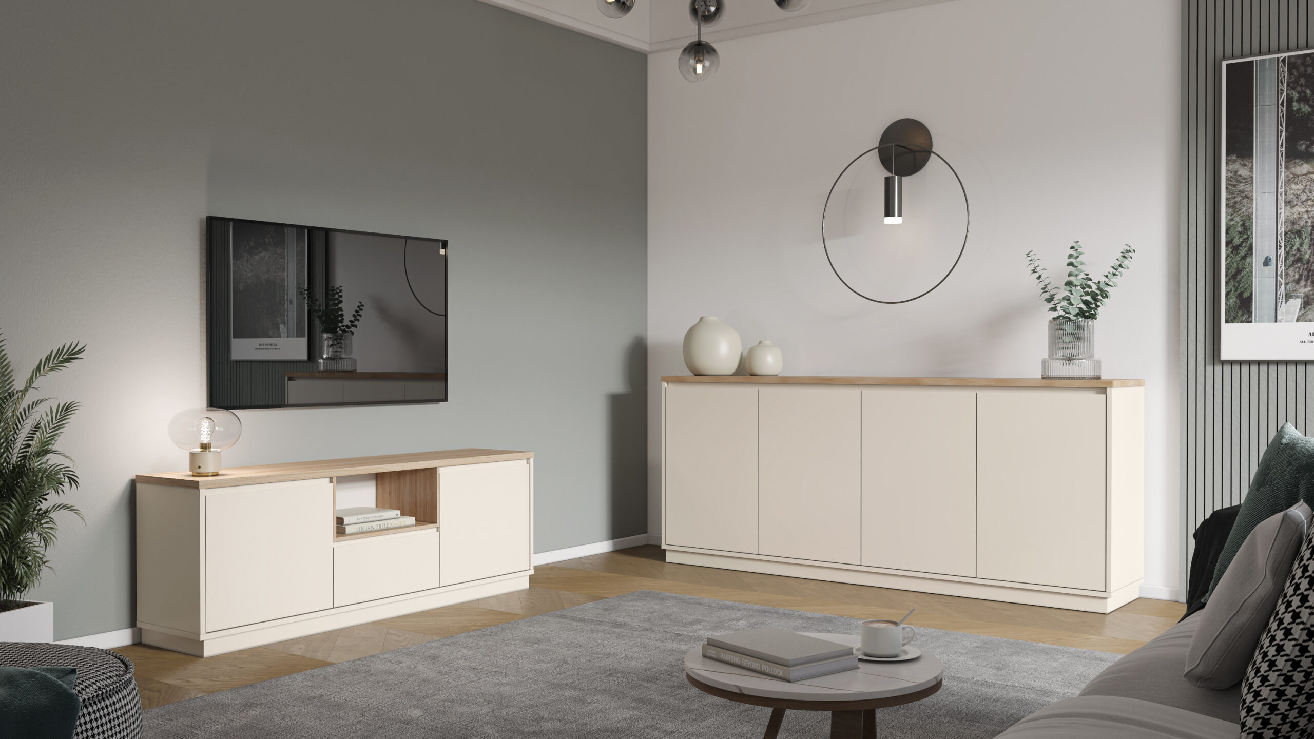 MUEBLE TV LORETA 3P1H VISON/ROBLE MELAMINA