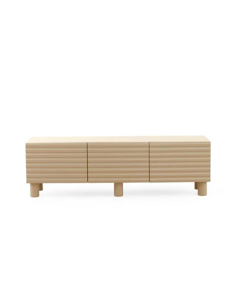 MUEBLE TV MDF COLOR BEIGE ARENA, RELIEVE ONDULADO EN LAS PUERTAS