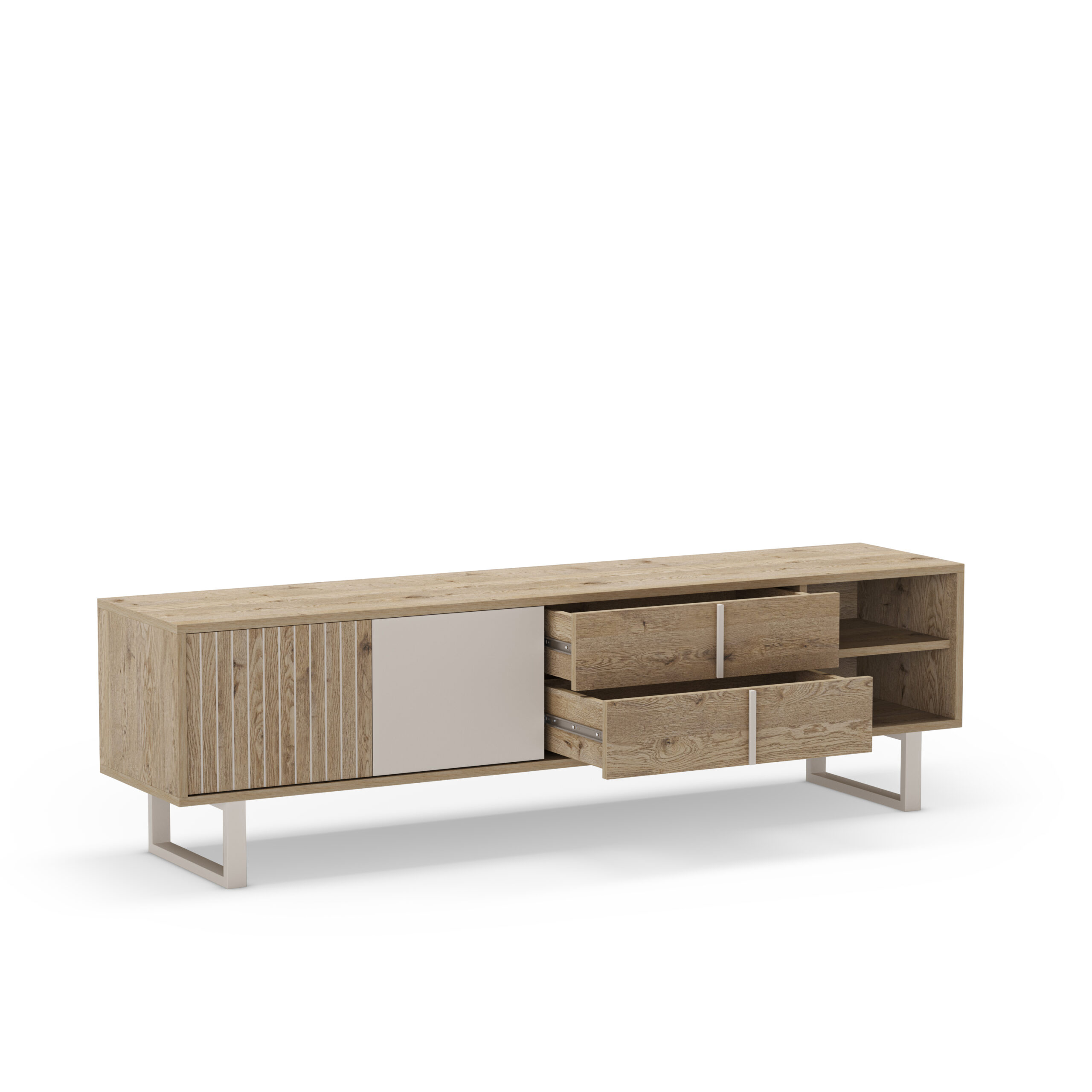 MUEBLE TV MILLAY 2P2C2H 180CM ROBLE-K/GRIS MELAMINA/METAL