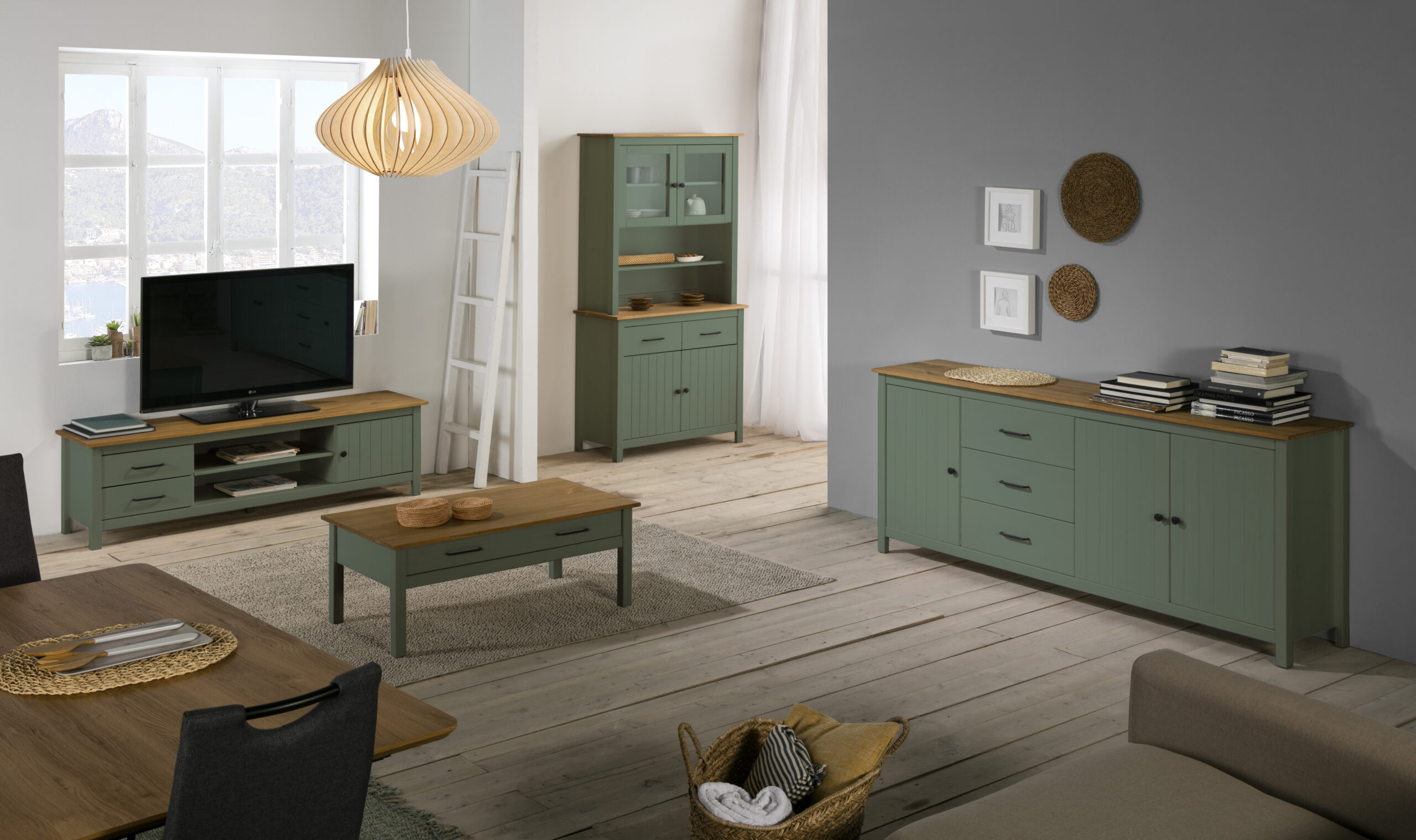 MUEBLE TV MIRANDA 1P2H2C VERDE 5615/CERA PINO
