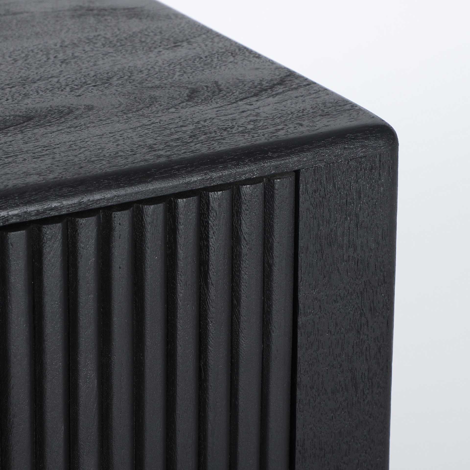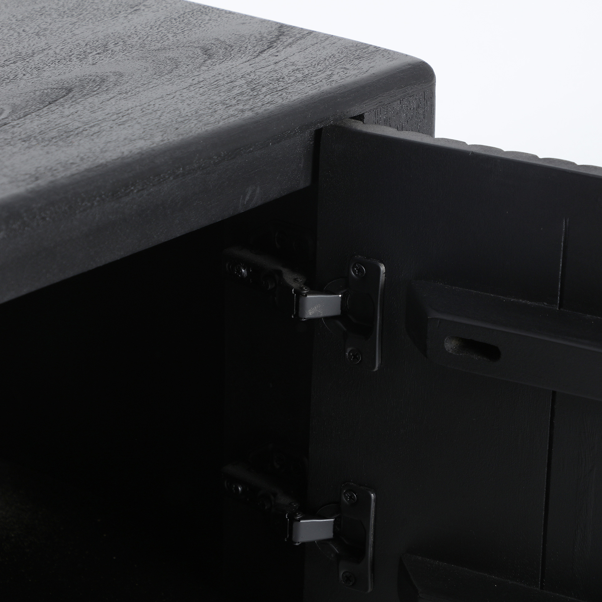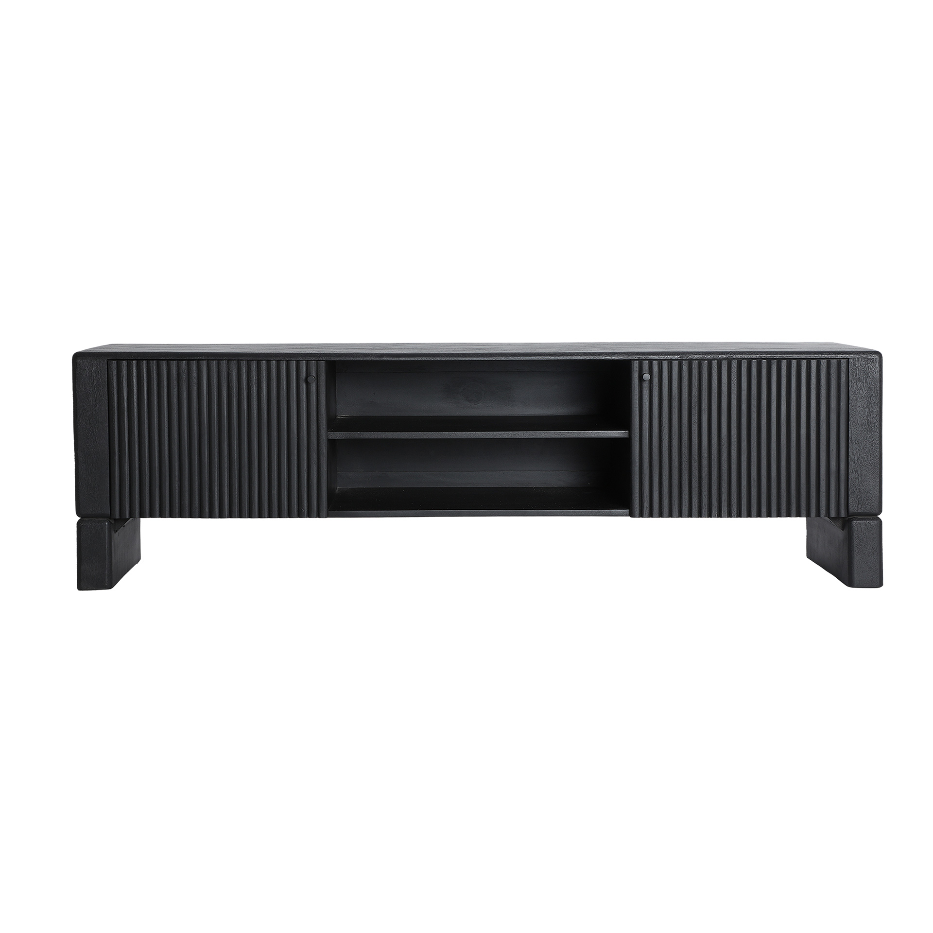 Mueble tv Nox de estilo contemporáneo, fabricado en madera de mango en color negro, combinado con madera dm.