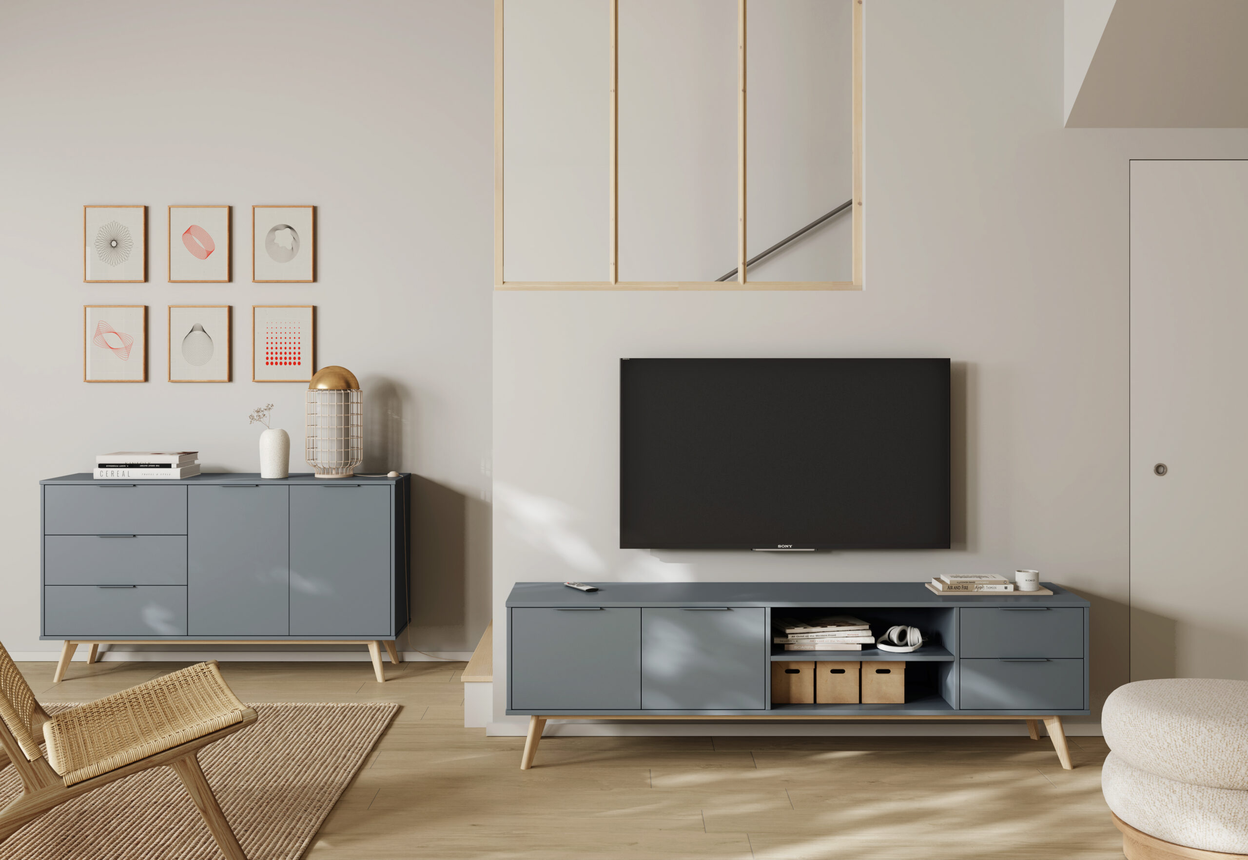 MUEBLE TV PISCO 2P2C2H VERDE KAKI 444C/CERA BLANCA PINO