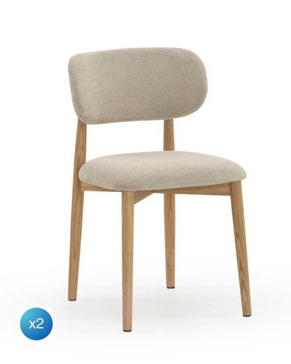 PACK 2 SILLAS MADERA DE ROBLE NATURAL TAPIZADO EN BEIG