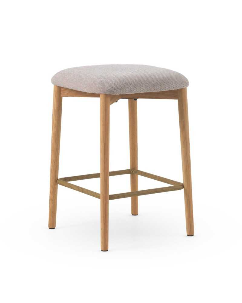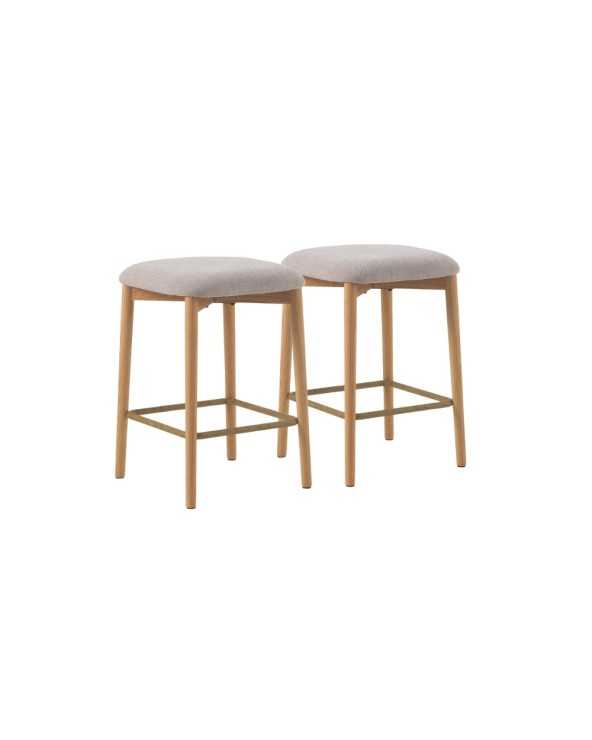 PACK 2 TABURETES DE MADERA DE ROBLE NATURAL TAPIZADO EN BEIGE