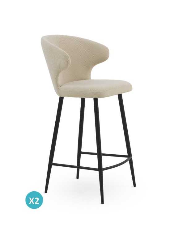 PACK 2 TABURETES TAPIZADOS COLOR BEIG PATAS METALICAS NEGRAS