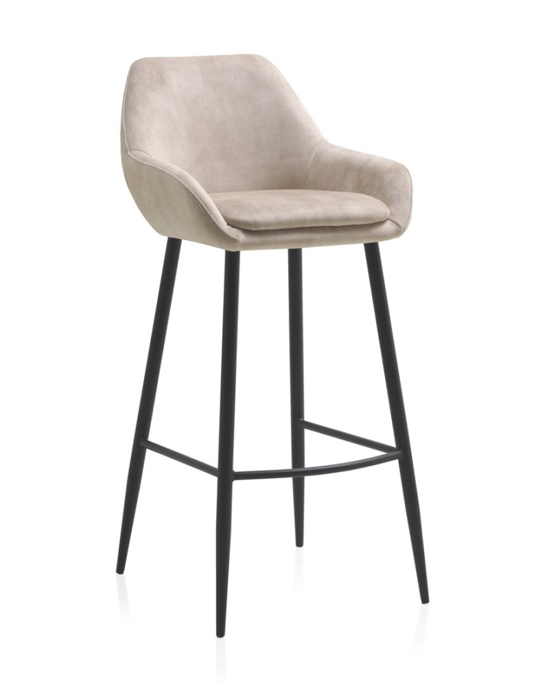 PACK 2 TABURETES TAPIZADOS COLOR BEIG PATAS METALICAS NEGRAS