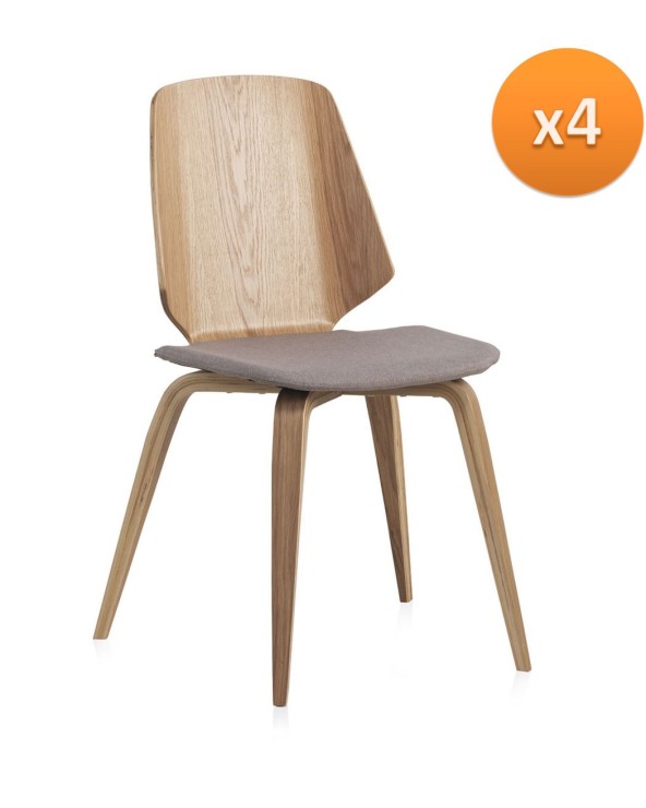 PACK 4 SILLAS MADERA CONTRACHAPADO ROBLE TAPIZADA