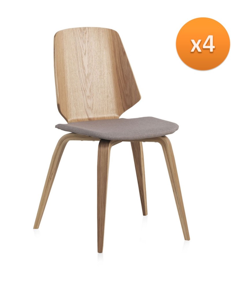 PACK 4 SILLAS MADERA CONTRACHAPADO ROBLE TAPIZADA NATURAL
