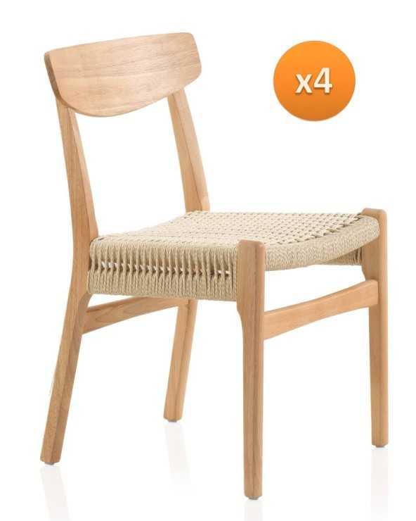 PACK 4 SILLAS MADERA DE HEVEA CON ASIENTO TRENZADO