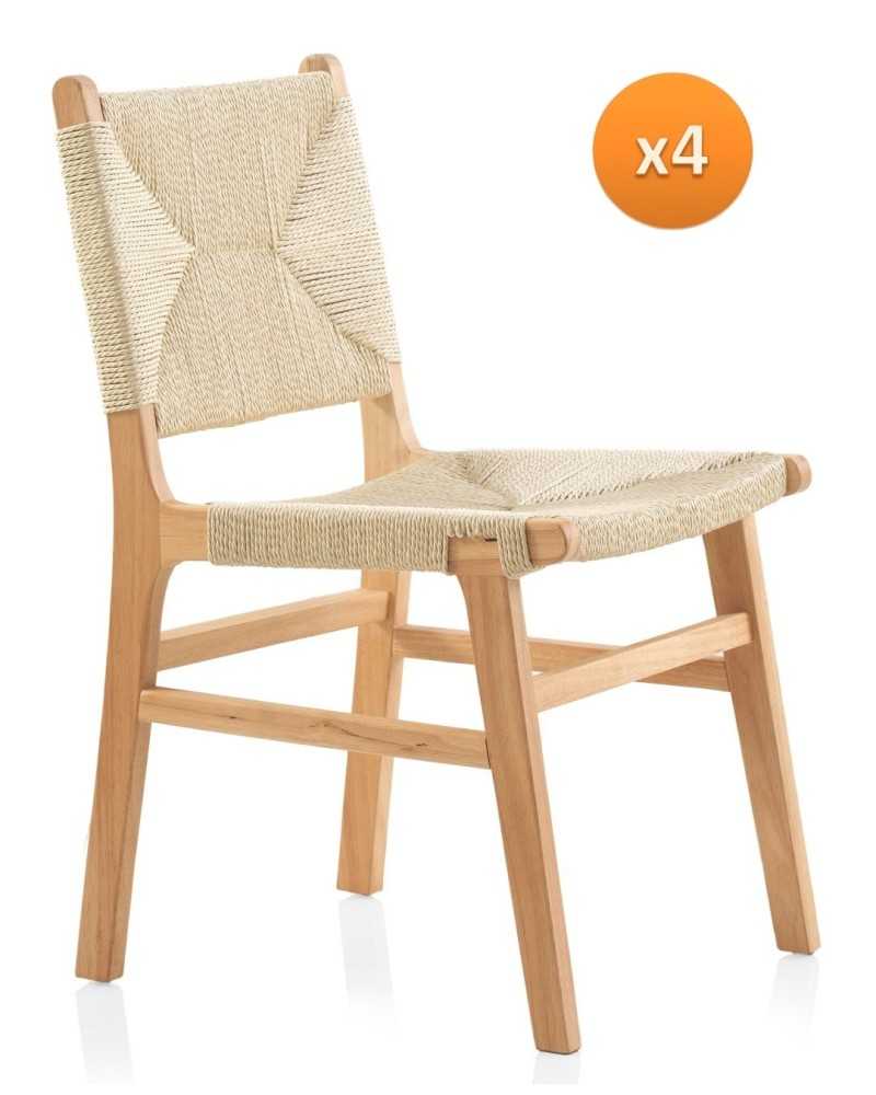 PACK 4 SILLAS MADERA DE HEVEA CON ASIENTO Y RESPALDO TRENZADO