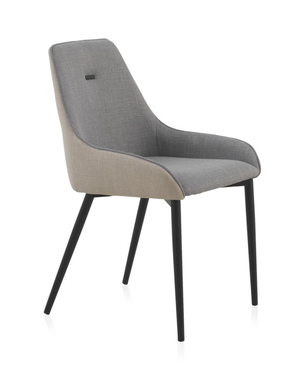 PACK 4 SILLAS TAPIZADAS BICOLOR BEIGE/GRIS PATAS METALICAS NEGRA