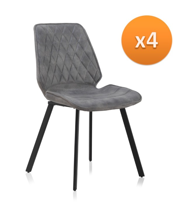 PACK 4 SILLAS TAPIZADAS GRIS CLARO PATAS METALICAS NEGRAS