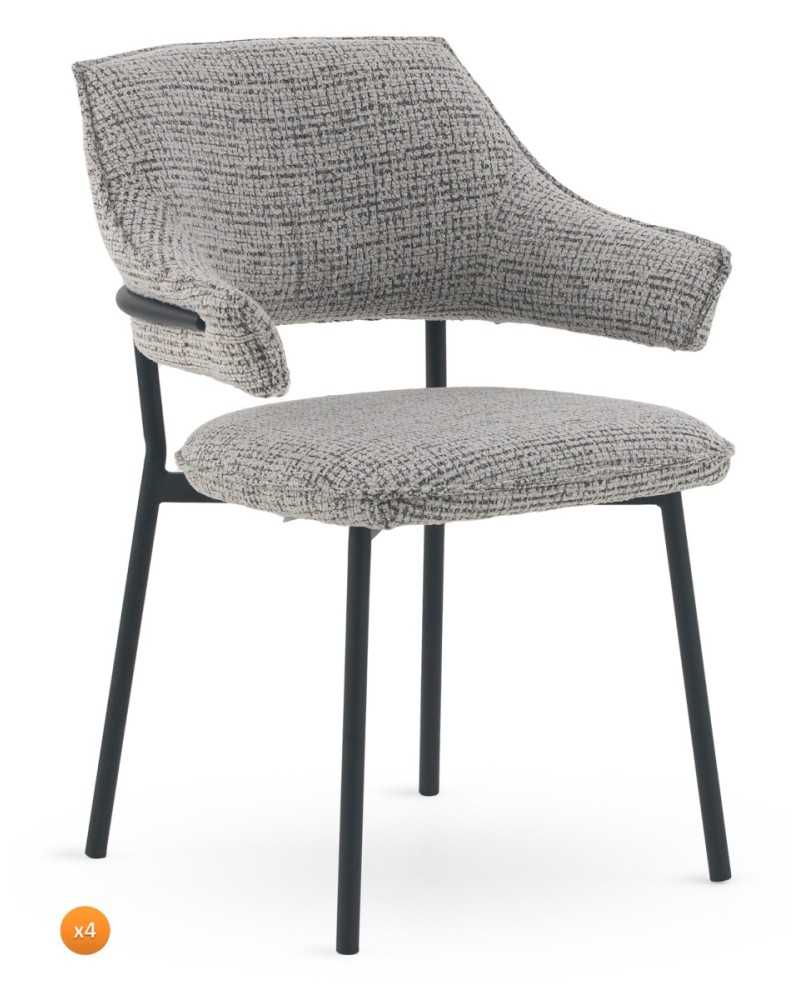 PACK 4 SILLONES TAPIZADOS CHENILLA JASPEADO GRIS CLARO CON PATAS