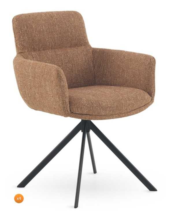 PACK 4 SILLONES TAPIZADOS TWEED TERRACOTA MOTEADO CON PATAS META