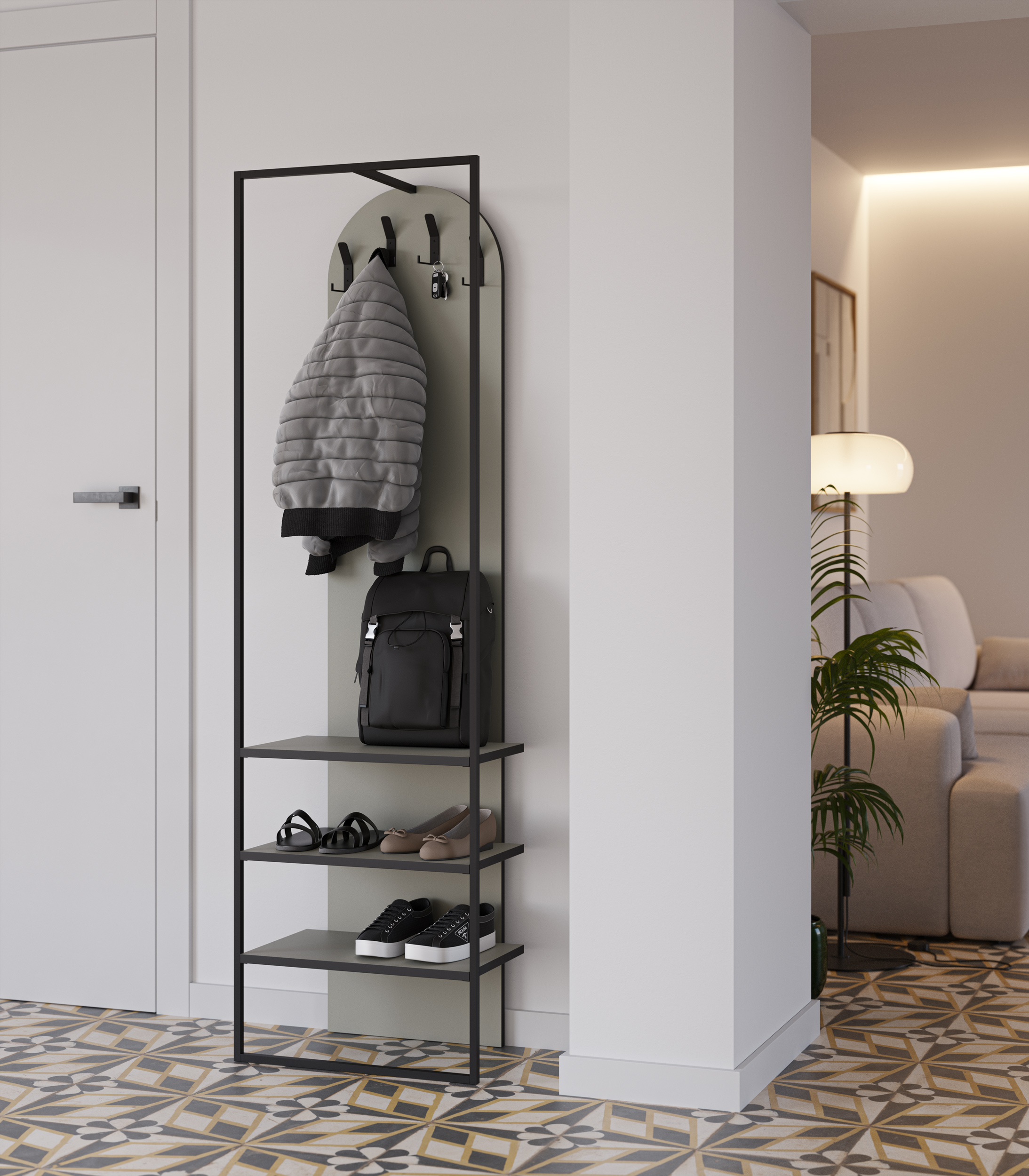 PERCHERO CON ZAPATERO EDORA VERDE/NEGRO MELAMINA/METAL