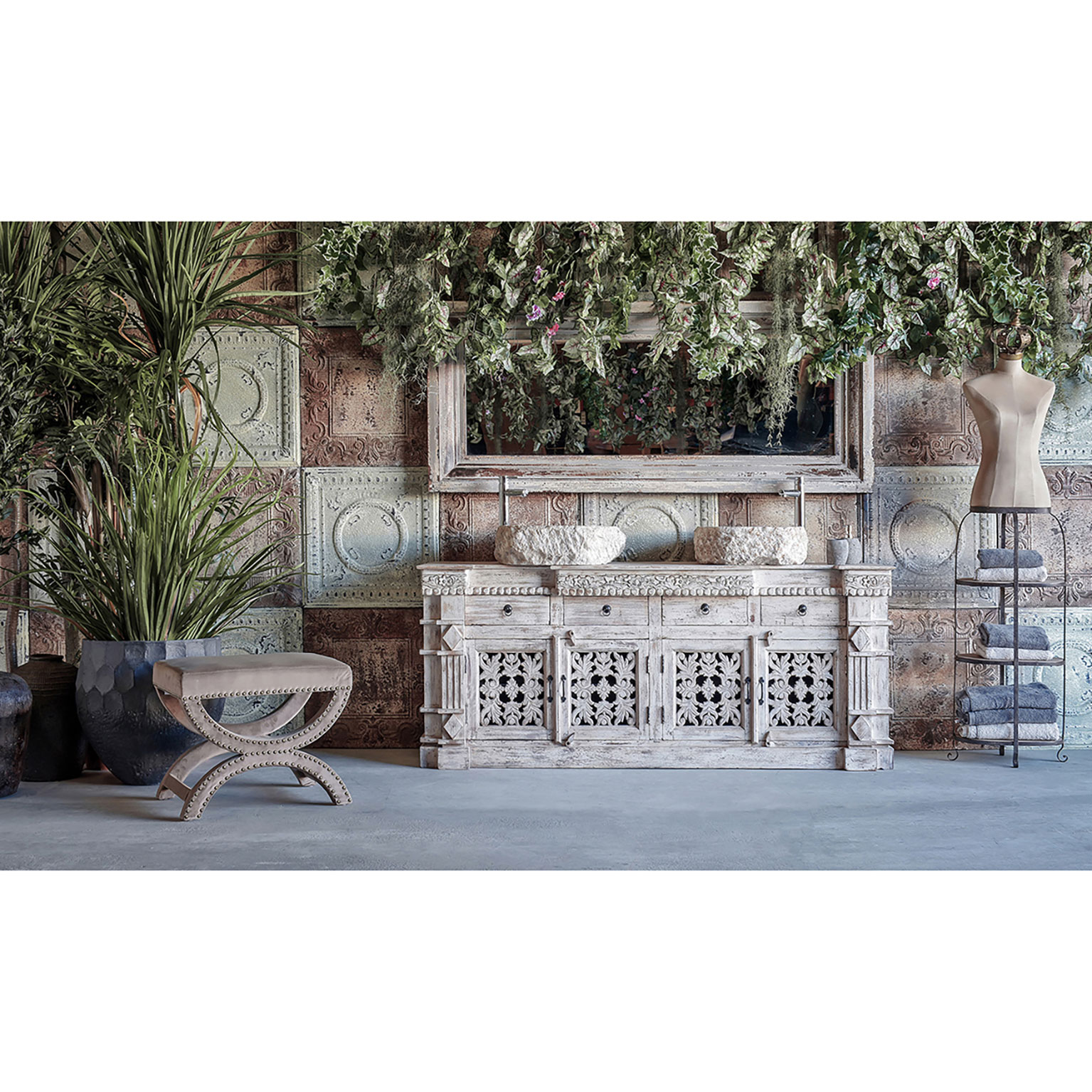 Planta Split philo de estilo shabby chic fabricado en plástico en color verde combinado con peva.
