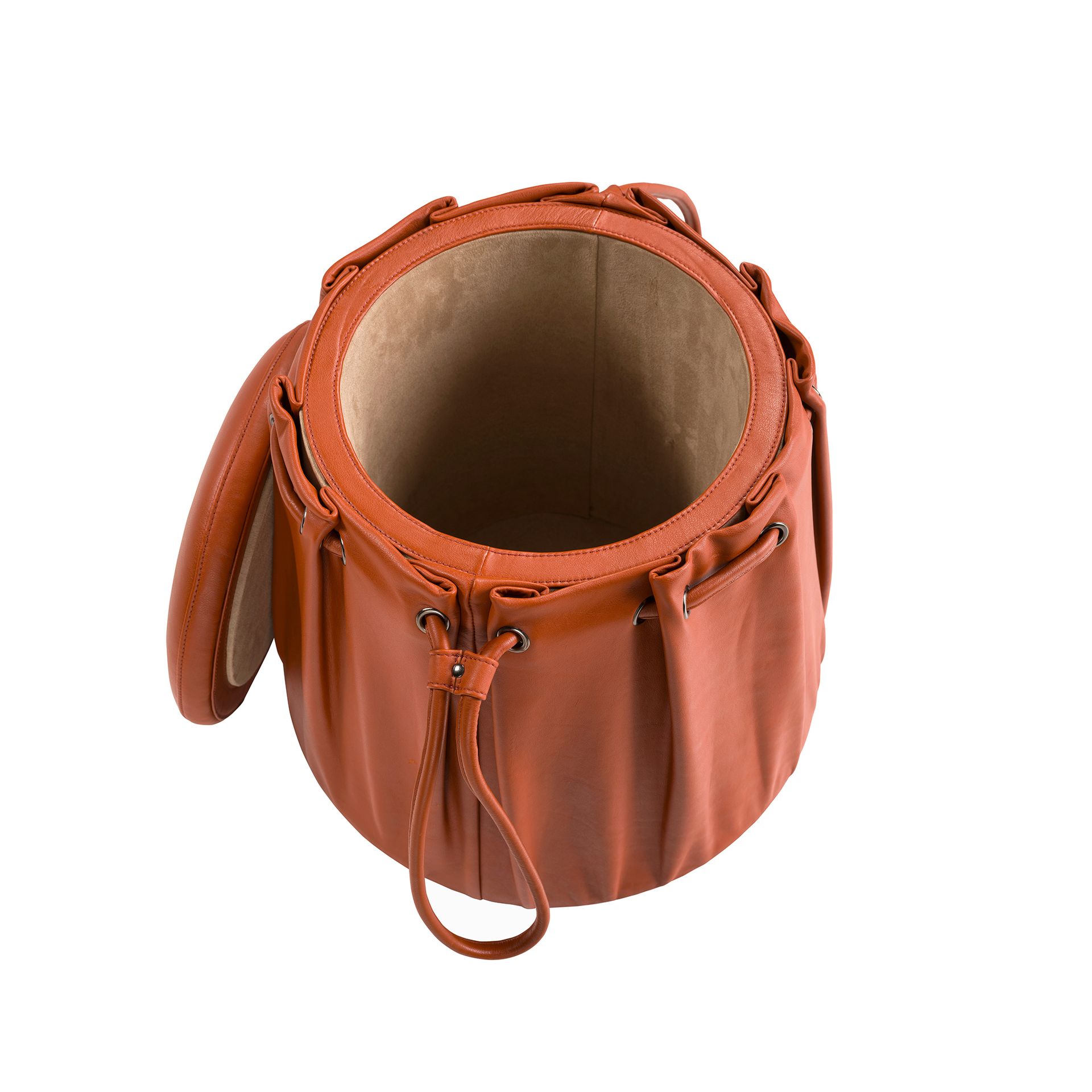 Puff piel naranja caldera modelo 5160 Angel Cerdá S.L.Puff de diseño moderno con asiento tapizado en piel de origen vacuno color naranja caldera. Su elegante estilo aporta el toque de distinción que busca para su hogar. Tanto por su diseño como por su fabricación en materiales nobles de la mas alta calidad, este puff de la firma Angel Cerdá, se convertirá en el auxiliar perfecto para su salón o zona de lectura. Un elemento decorativo a la vez que práctico y funcional.Medidas del producto: Ø52 x 44 cm.- Este puff tapizado en piel de corigen vacuno de 1,25 mm de espesor aportará un toque cálido y único al espacio. – Cuenta con unas originales asas en color naranja caldera que le otorga el toque sofisticado y elegante que busca para sus estancias. – Tanto por su diseño como por su estilo actual, así como por su espacio de almacenaje interior, se trata de una pieza totalmente versátil y funcional para la zona de descanso o lectura. – Su forma redondeada y su estructura acolchada, te permitirá contar con el máximo confort para descansar, sin dejar de lado la más alta tendencia. – La tela aterciopelada de su interior aporta el toque único, diferente y exclusivo a este puff. Una pieza de estilo moderno pensada para relajarse y disfrutar de la mayor comodidad.