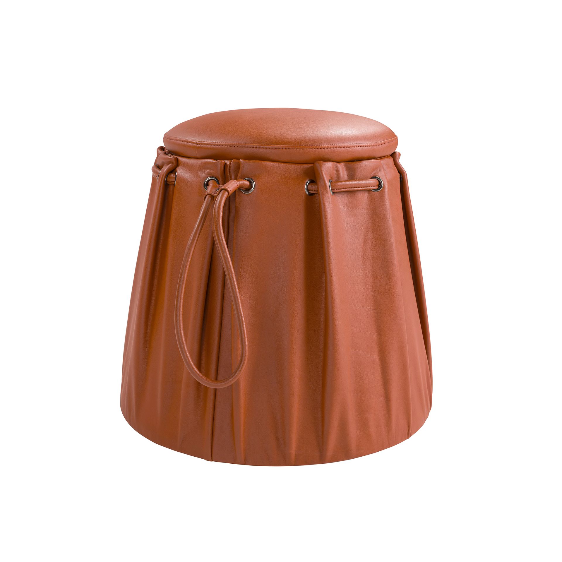Puff piel naranja caldera | – Tapizado del asiento: Piel de origen vacuno de 1.25 mm de espesor- Composición del tapizado: 100% Piel- Material del relleno: Espuma de poliuretano de 25kg/m3 de densidad