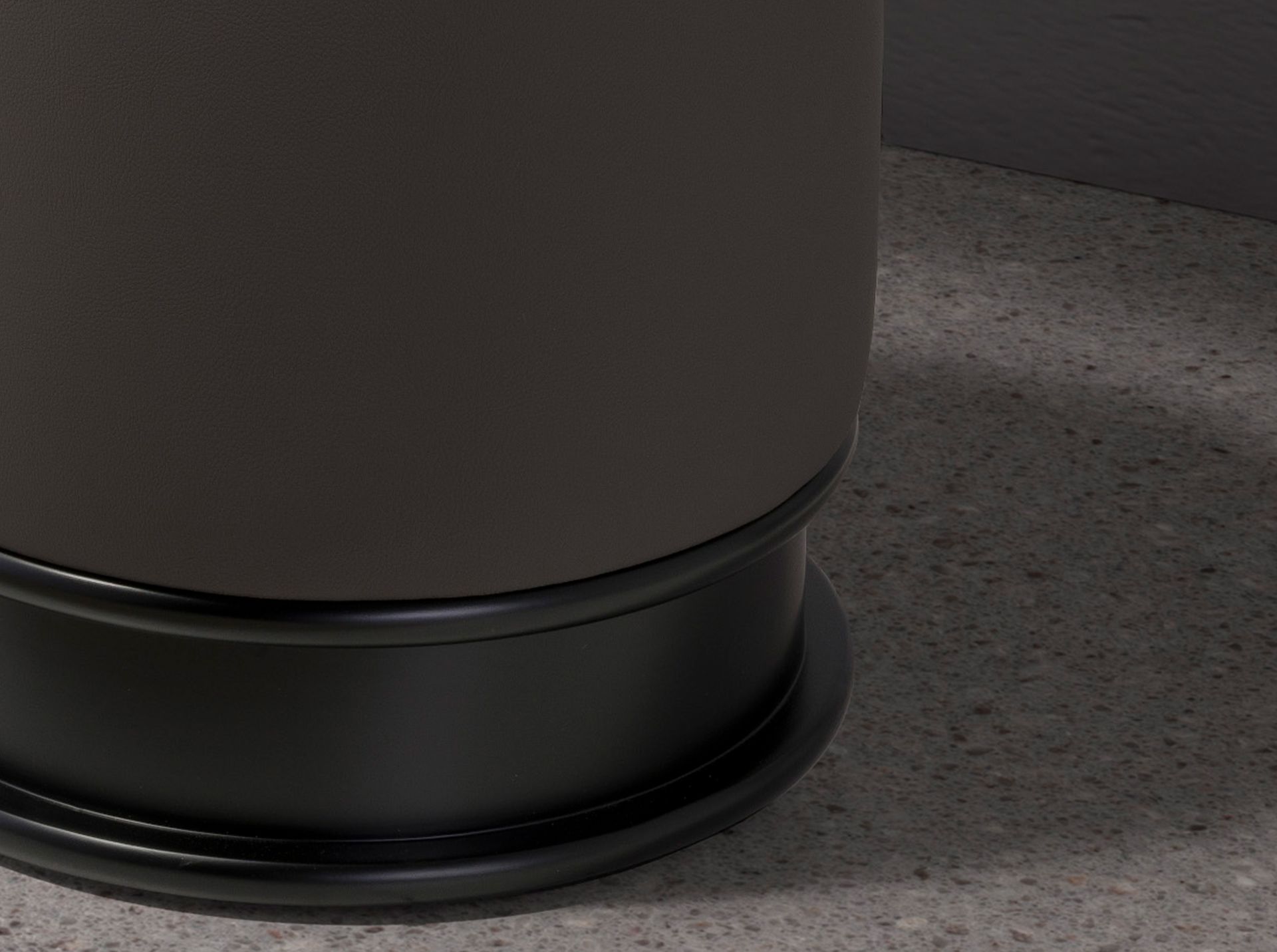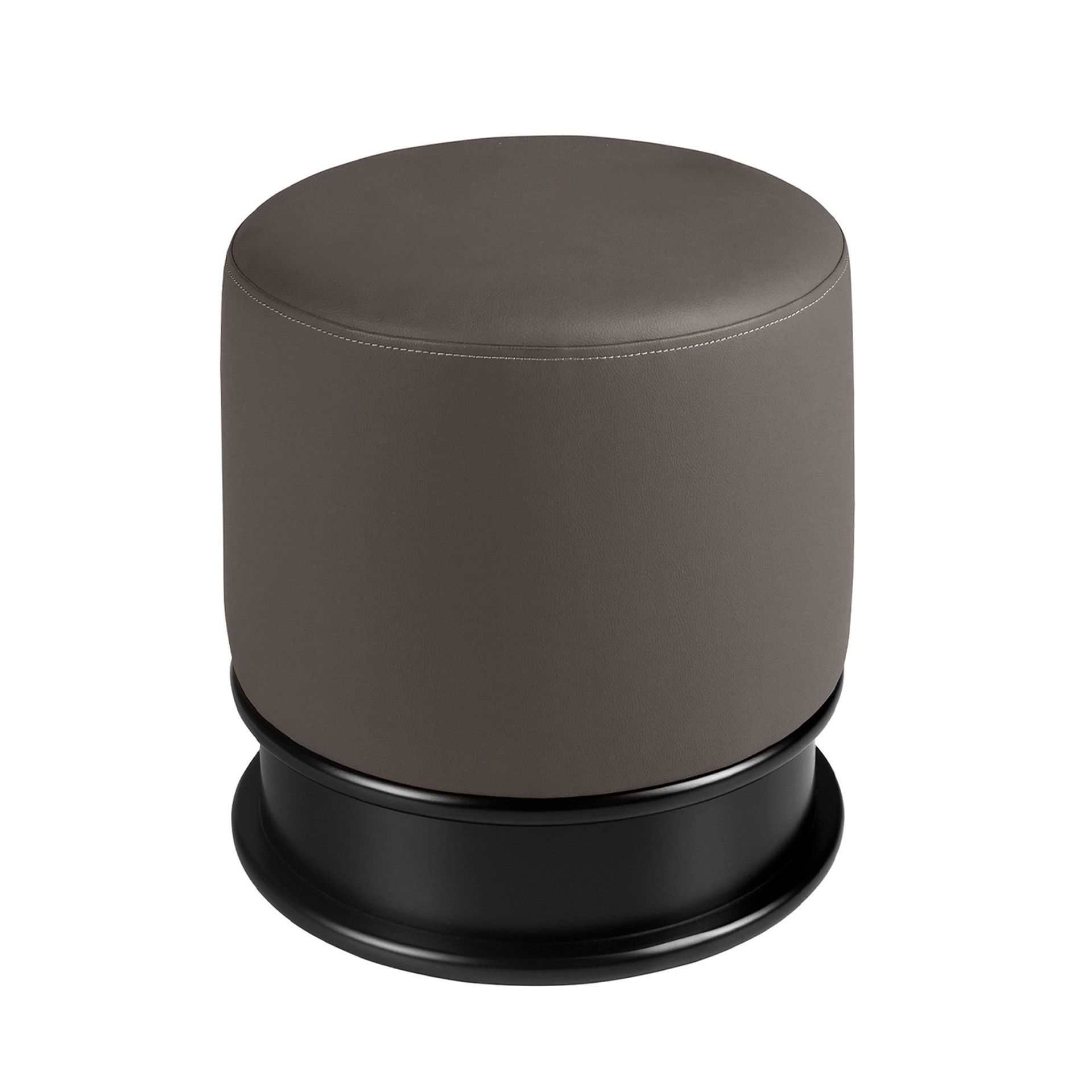 Puff polipiel gris oscuro | – Tapizado del asiento: Polipiel- Composición del tapizado: 90% Vinilo y 10% Poliester- Material del relleno: Espuma de poliuretano de 25kg/m3 de densidad- Material de la base: Base de madera de MDF lacada en color negro