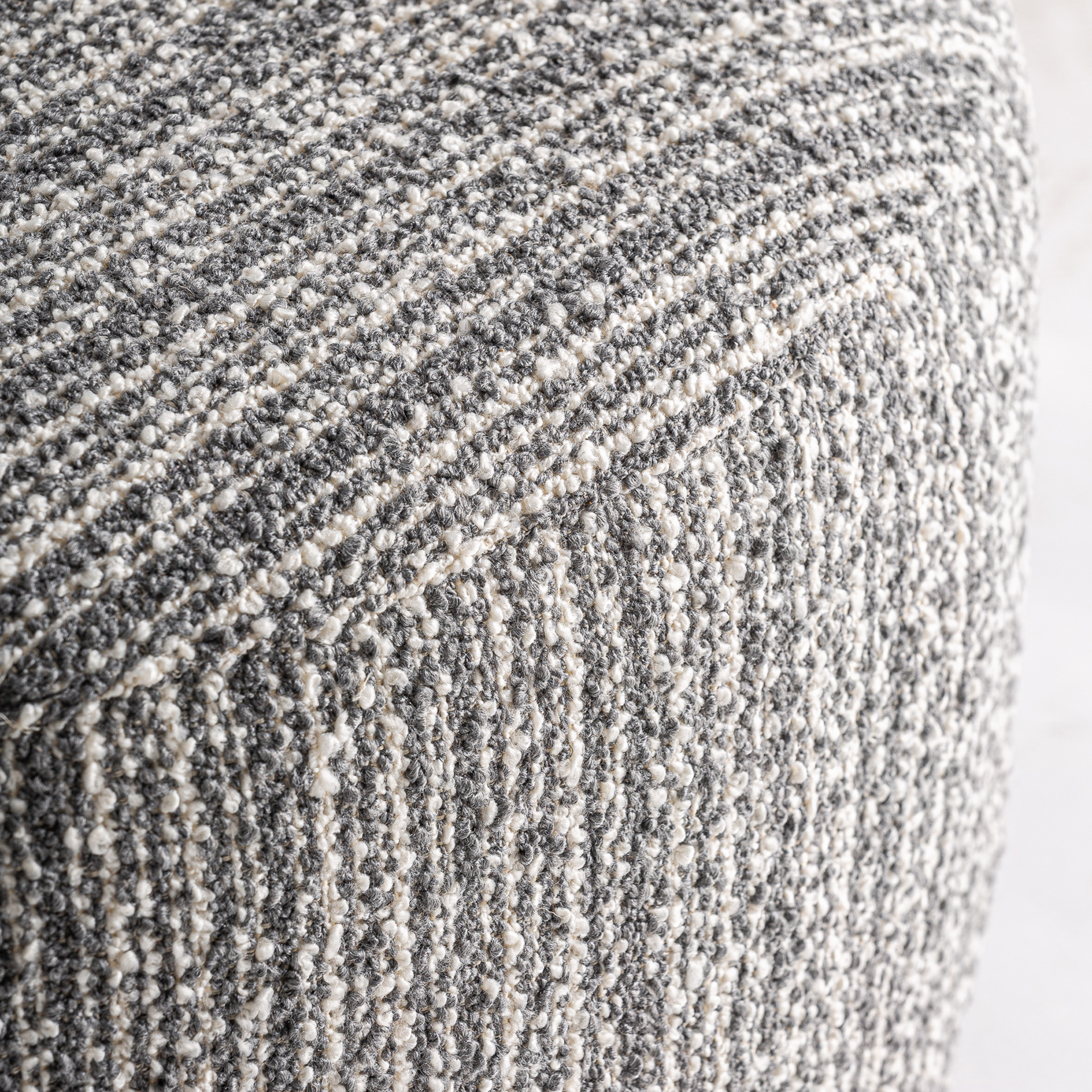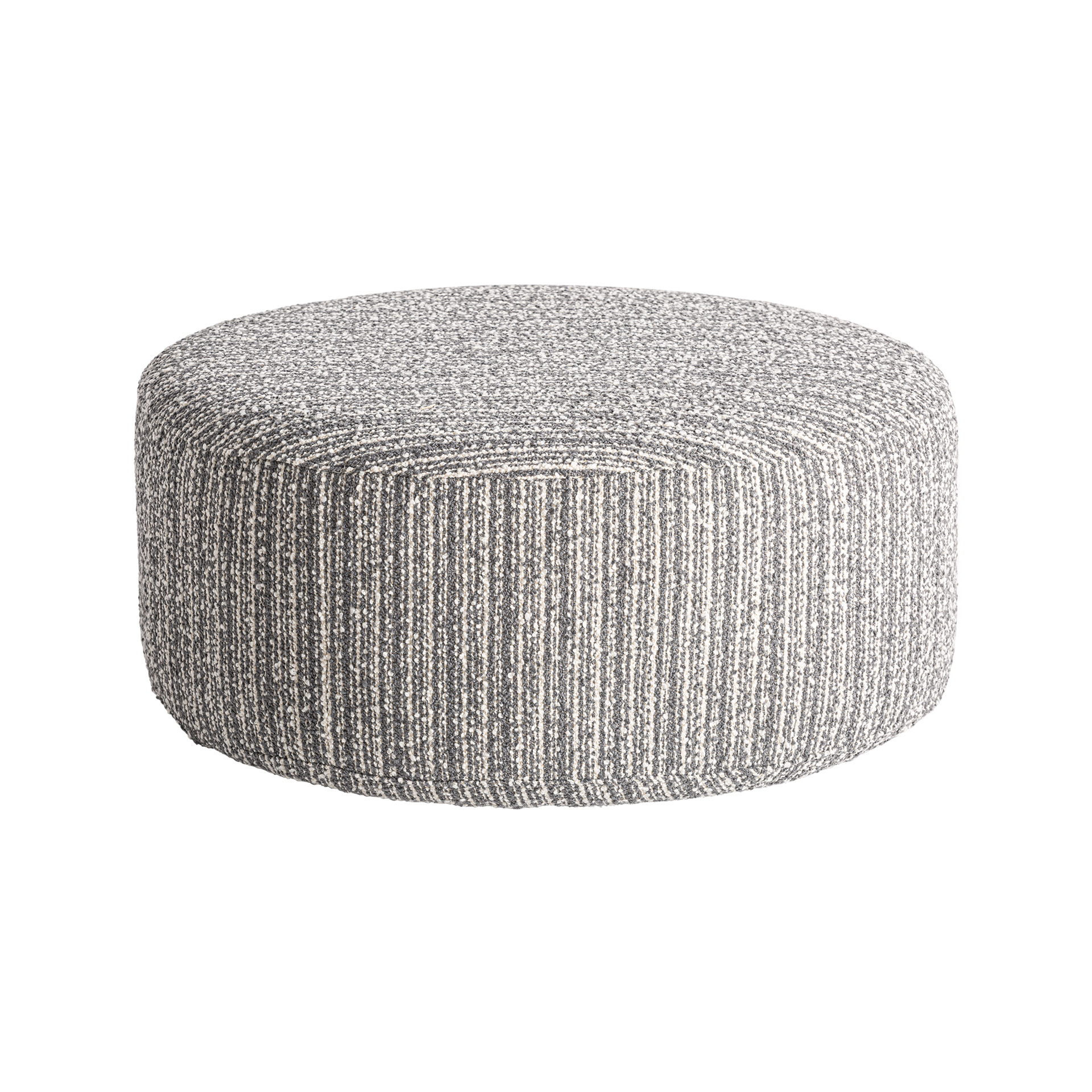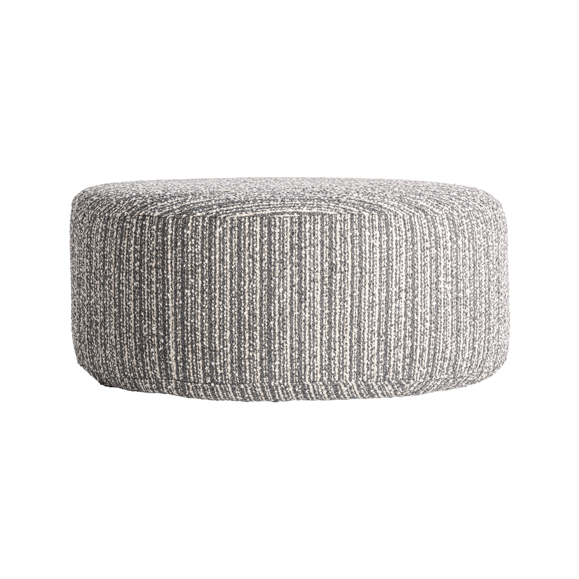 Reposapiés Bubu de estilo contemporáneo, fabricado en poliéster en color gris con acabado jaspeado.
