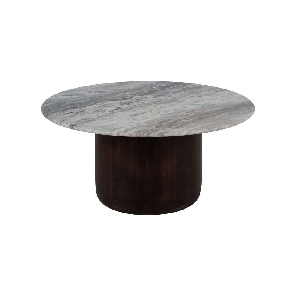 S/2 MESA CENTRO MADERA-MÁRMOL SALÓN 100 X 100 X 43 CM Material: mármol, madera de mango. Medidas: 100x100x43cm – 80x80x38cm. El mármol es un material natural que puede tener variaciones en su aspecto.