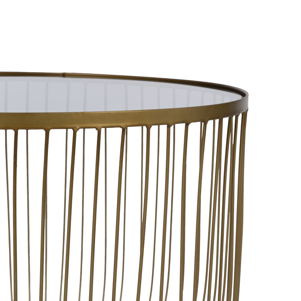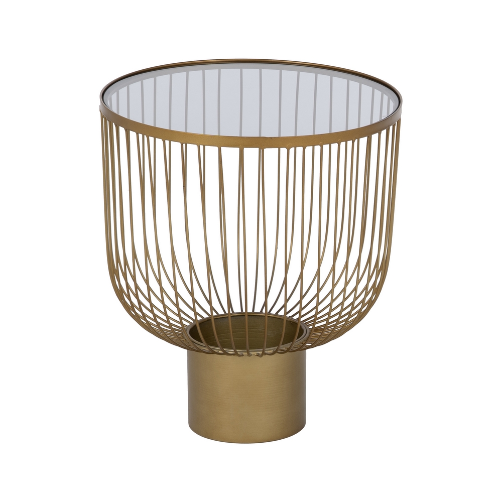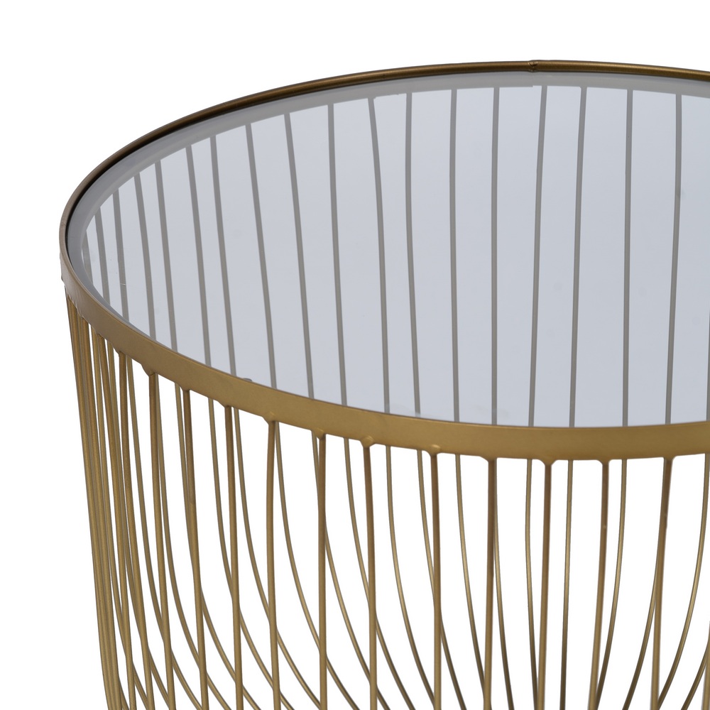 S/2 MESITAS ORO METAL-CRISTAL 50 X 50 X 54,50 CM Material: hierro – cristal – mármol 50x50x54.5 – 42x42x48.5cm.