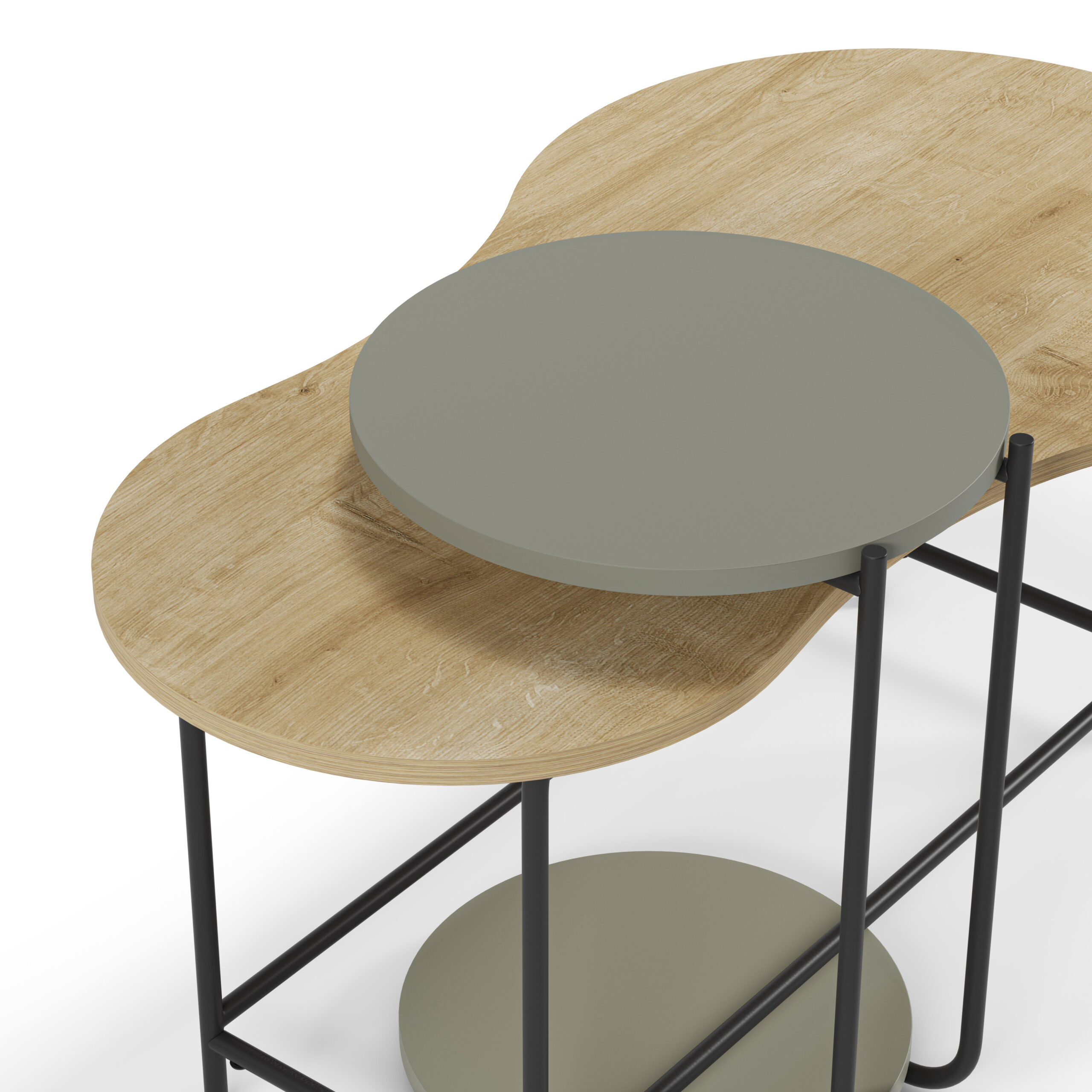 SET 2 MESAS CENTRO ROSIE ROBLE/VERDE MELAMINA/METAL