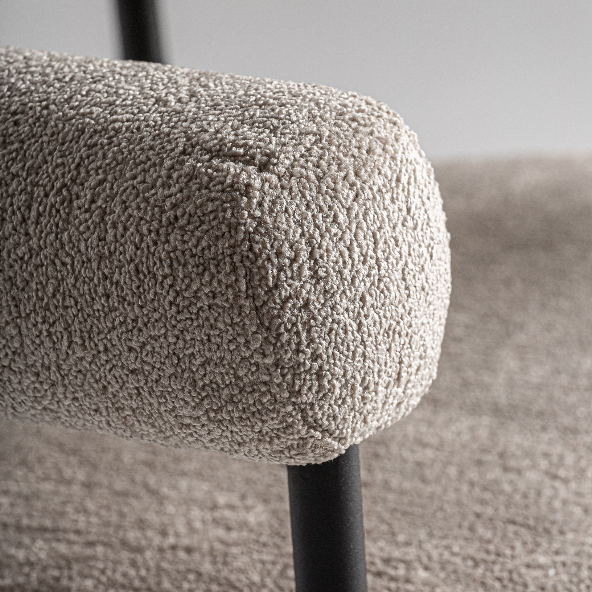 Silla Albula de estilo contemporáneo fabricado en poliéster en color gris combinado con acero inoxidable en color negro y espuma. Producto desmontable.