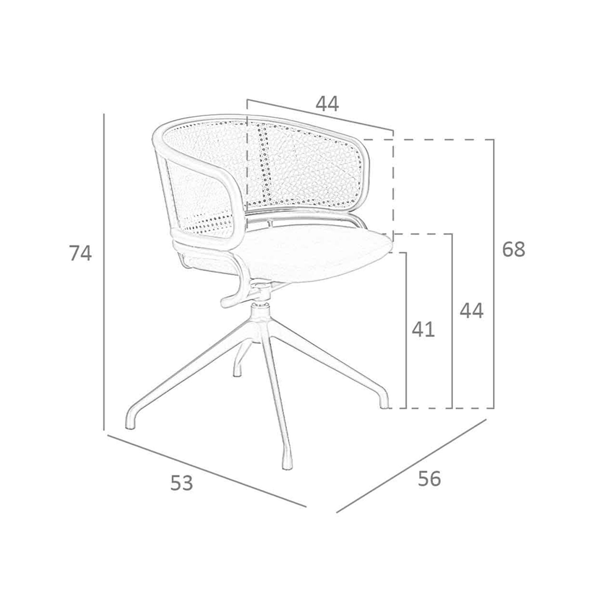 Silla giratoria rattan y terciopelo marrón modelo 4129 Angel Cerdá S.L.Silla giratoria con reposabrazos de diseño moderno con asiento tapizado en tela aterciopelada color marrón y respaldo de rattán. Tanto por su detalle en pvc negro, como por sus patas de acero inoxidable color negro de estilo vanguardista a la vez que atemporal, la convertirán en el must have de su cocina o comedor. Esta silla de la firma Angel Cerdá, aúna el estilo único y personal de la marca, así como la mayor comodidad y estabilidad, gracias a la alta calidad de su tapizado y la original estructura de patas.Medidas del producto: 56 x 53 x 74 cm.- La combinación de la tela con el acero negro, ofrece además de un toque moderno, un aire distintivo y sofisticado al espacio. – La originalidad de sus patas aúnan el estilo más vanguardista de nuestra marca con la mayor calidad y comodidad. – El diseño moderno de esta silla de comedor la convierten en una pieza clave para crear ambientes elegantes y funcionales. – El tamaño de su asiento y su relleno en espuma de poliuretano de 25kg/m3, así como su diseño de respaldo envolvente le permitirá contar con el máximo confort. – Gracias a su diseño de patas giratorias y estilo atemporal, esta silla de comedor se convertirá en el must have de su comedor. Un estilo único y personal, sin renunciar a la mayor versatilidad. – Su original respaldo de rejilla de rattán ofrece ese toque de tendencia y personalidad que caracteriza nuestra marca.