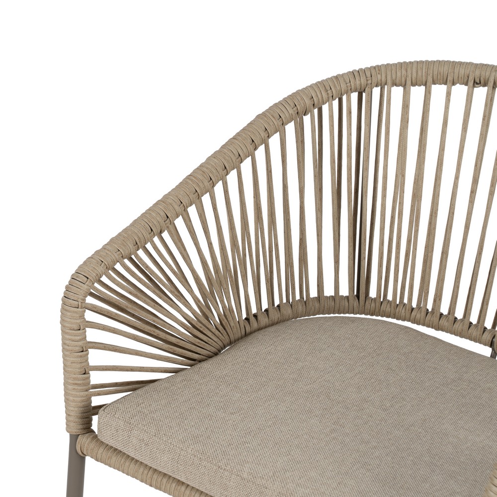 SILLA NATURAL-GRIS PE-ACERO EXTERIOR 58 X 58 X 77,50 CM Material: polietileno, acero. Altura asiento: 50cm. Ancho asiento: 44cm. Profundidad asiento: 44cm. Altura respaldo: 33cm. Altura reposabrazos: 15/25cm. Cojín desenfundable. Cumple la normativa EN581 (uso exterior).