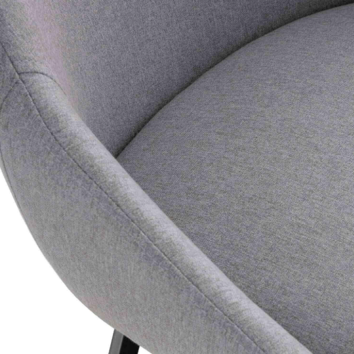 Esta silla cuenta con un mecanismo de giro de 180º con retorno automático, lo que la hace ideal para espacios dinámicos. Su respaldo curvado y asiento acolchado están tapizados en tejido 100% poliéster de color gris claro, aportando un toque de sofisticación y versatilidad a cualquier ambiente moderno.