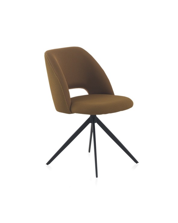 SILLA TAPIZADA GIRATORIA NIDO DE ABEJA MOSTAZA CON PATAS METALIC