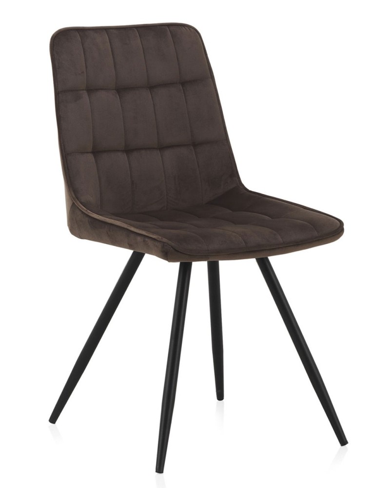 SILLA TAPIZADA TERCIOPELO MARRON PATAS METALICAS NEGRAS