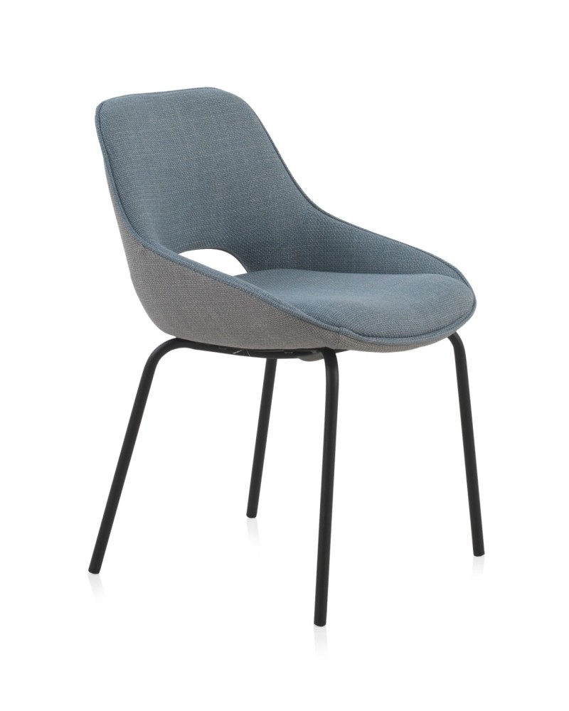 SILLA TAPIZADAS BICOLOR AZUL/GRIS PATAS METALICAS NEGRAS