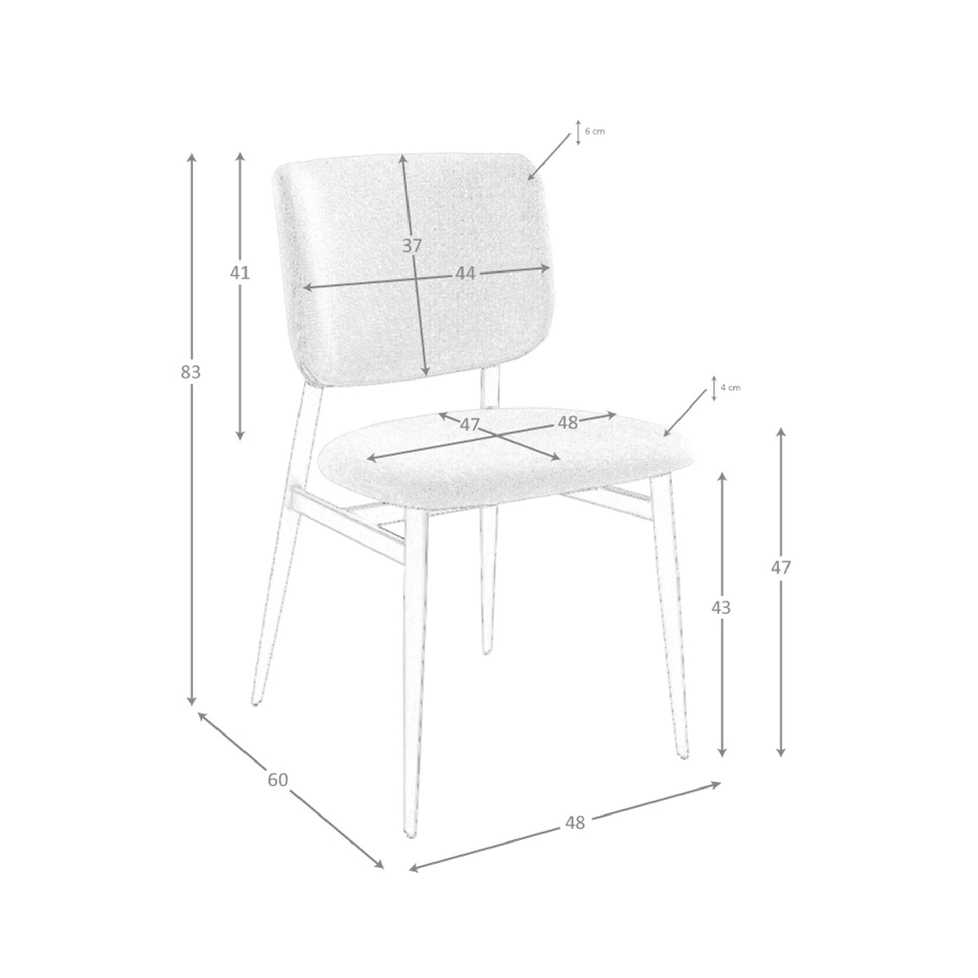 Silla tela gris claro modelo 4147 Angel Cerdá S.L.Silla de diseño moderno con asiento y respaldo tapizados en tela color gris claro. Sus patas de acero inoxidable pintado en epoxi negro de estilo vanguardista a la vez que atemporal, la convertirán en el must have de su cocina o comedor. Esta silla de la firma Angel Cerdá, aúna el estilo único y personal de la marca, así como la mayor comodidad y estabilidad, gracias a la alta calidad de su tapizado y la original estructura de patas.Medidas del producto: 48 x 60 x 83 cm.- La combinación de la tela con el acero negro, ofrece además de un toque moderno, un aire distintivo y sofisticado al espacio. – Sus patas robustas y de carácter lineal permite combinarla con cualquier mesa de comedor de nuestro catálogo. – Su diseño versátil y funcional, la convierte en una silla ideal para cualquier tipo de salón, comedor o cocina. – Tanto por el tamaño de su asiento y su relleno en espuma de poliuretano de 25kg/m3, así como su cómodo respaldo le permitirá contar con el máximo confort, sin dejar de lado el diseño más actual.
