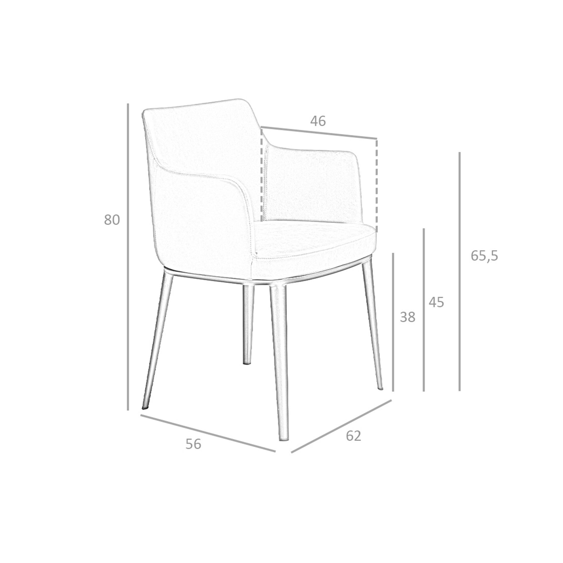 Silla tela visón modelo 4112 Angel Cerdá S.L.Silla con reposabrazos de diseño moderno con asiento y respaldo tapizados en tela color visón. Sus patas de acero inoxidable color negro de estilo vanguardista a la vez que atemporal, la convertirán en el must have de su cocina o comedor. Esta silla de la firma Angel Cerdá, aúna el estilo único y personal de la marca, así como la mayor comodidad y estabilidad, gracias a la alta calidad de su tapizado y la original estructura de patas.Medidas del producto: 56 x 62 x 80 cm.- Gracias al tapizado en tela de esta silla de comedor, conseguirá el toque distintivo y diferente que busca para su zona de comedor. – Sus patas robustas y de carácter lineal permite combinarla con cualquier mesa de comedor de nuestro catálogo. – Un diseño atemporal que aúna la mayor calidad que nos caracteriza con la funcionalidad y la practicidad para el día a día. – El tamaño de su asiento y su relleno en espuma de poliuretano de 25kg/m3, así como su diseño de respaldo envolvente le permitirá contar con el máximo confort.