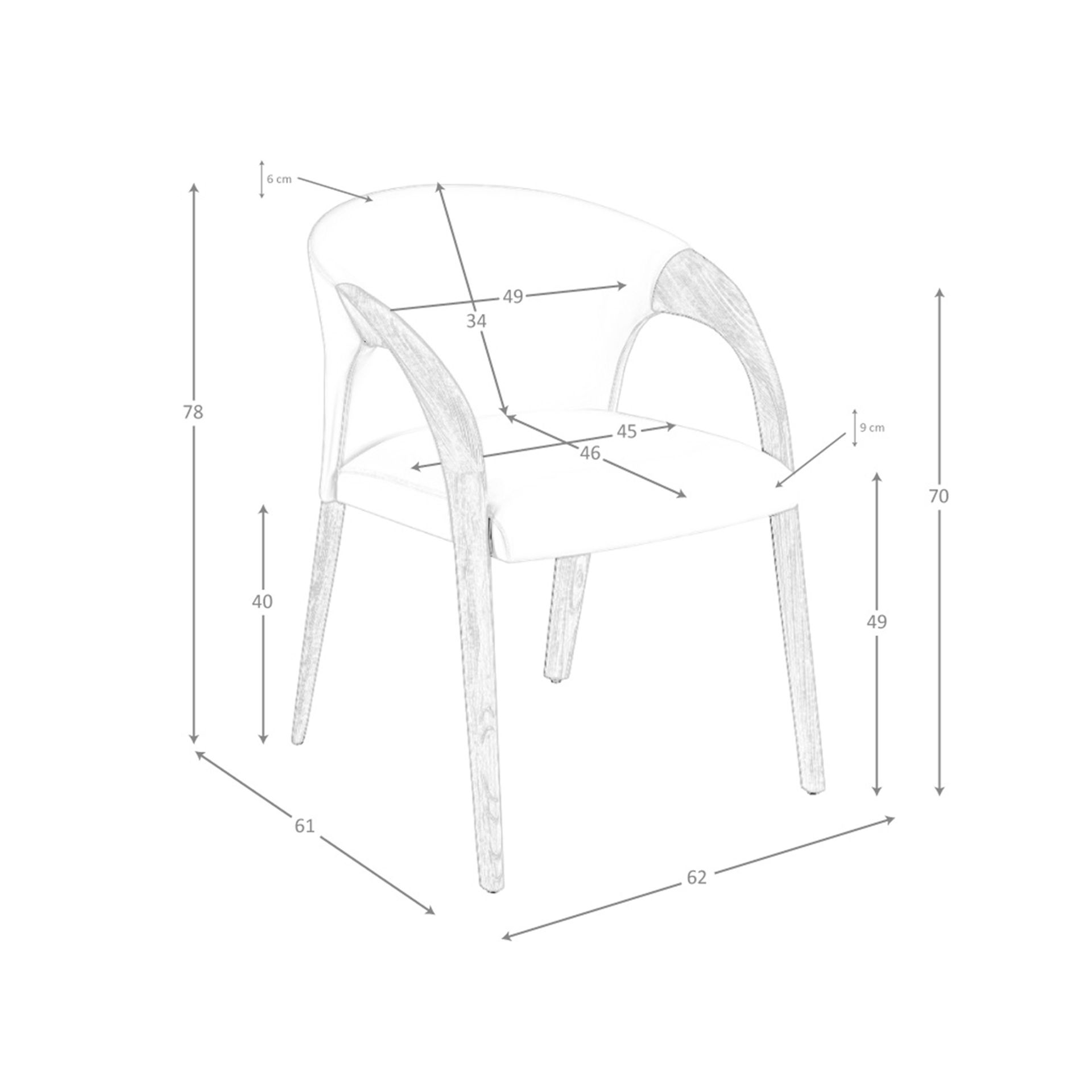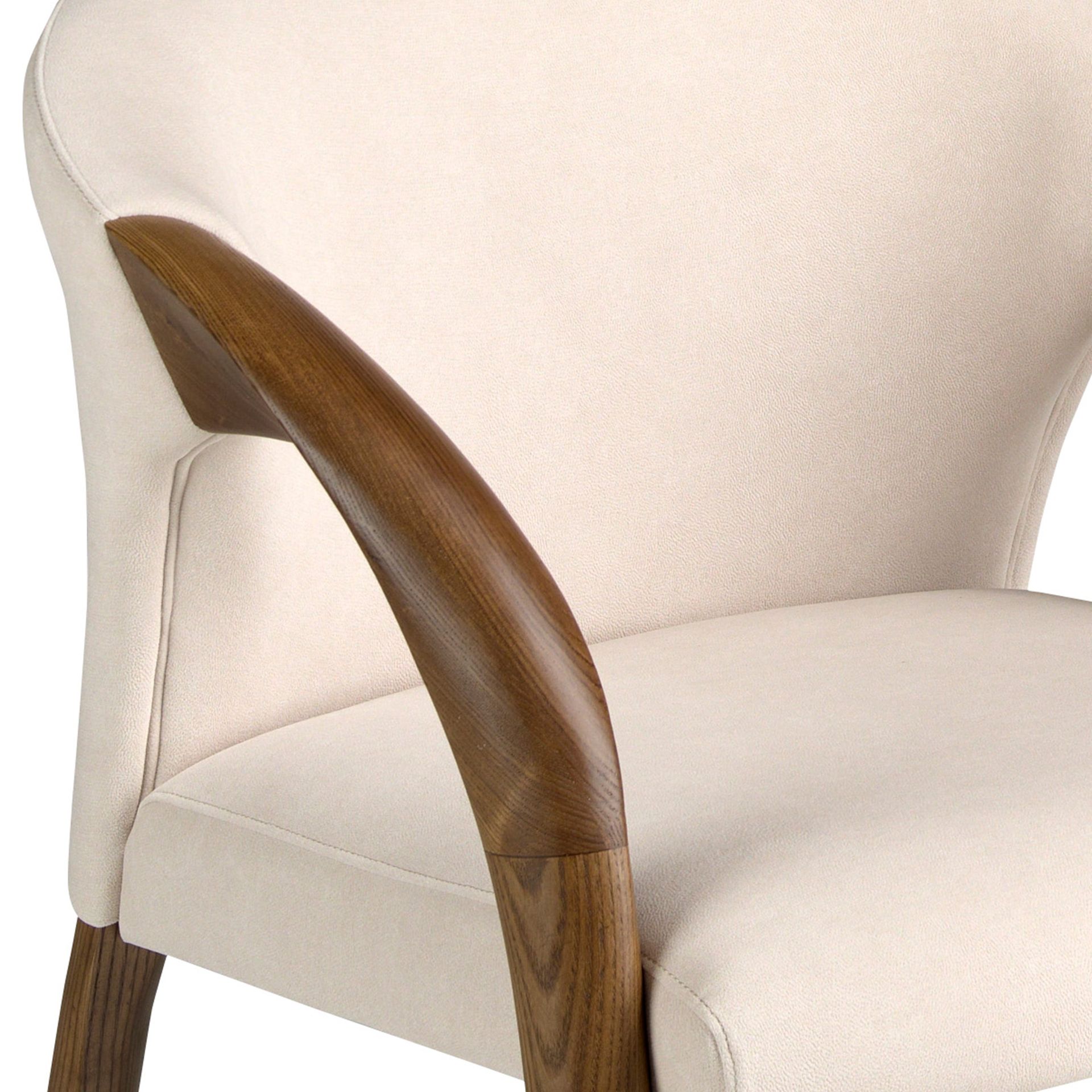 Silla terciopelo crema modelo 5151 Angel Cerdá S.L.Silla con reposabrazos de diseño moderno con asiento y respaldo tapizados en tela aterciopelada color crema. Sus patas de madera en color nogal de estilo vanguardista a la vez que atemporal, la convertirán en el must have de su cocina o comedor. Esta silla de la firma Angel Cerdá, aúna el estilo único y personal de la marca, así como la mayor comodidad y estabilidad, gracias a la alta calidad de su tapizado y la original estructura de patas.Medidas del producto: 62 x 61 x 78 cm.- El tapizado en tela aterciopelada de esta silla aportará un toque único y diferente, así como una mayor sensación de calidez a tu comedor. – La originalidad de sus patas aúnan el estilo más vanguardista de nuestra marca con la mayor calidad y comodidad. – Si busca la silla de comedor perfecta para su hogar, ésta es una opción ideal para aunar el toque moderno y de vanguardia que necesita, con la mayor calidad y funcionalidad. – Tanto por el tamaño de su asiento y su relleno en espuma de poliuretano de 25kg/m3, así como su cómodo respaldo le permitirá contar con el máximo confort, sin dejar de lado el diseño más actual.