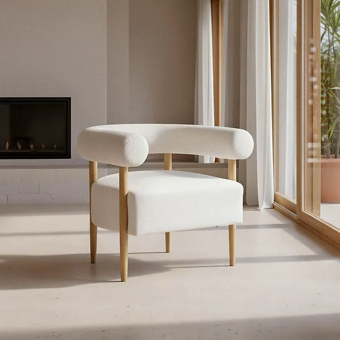 SILLÓN BEIGE TEJIDO-MADERA SALÓN 80 X 67 X 69 CM