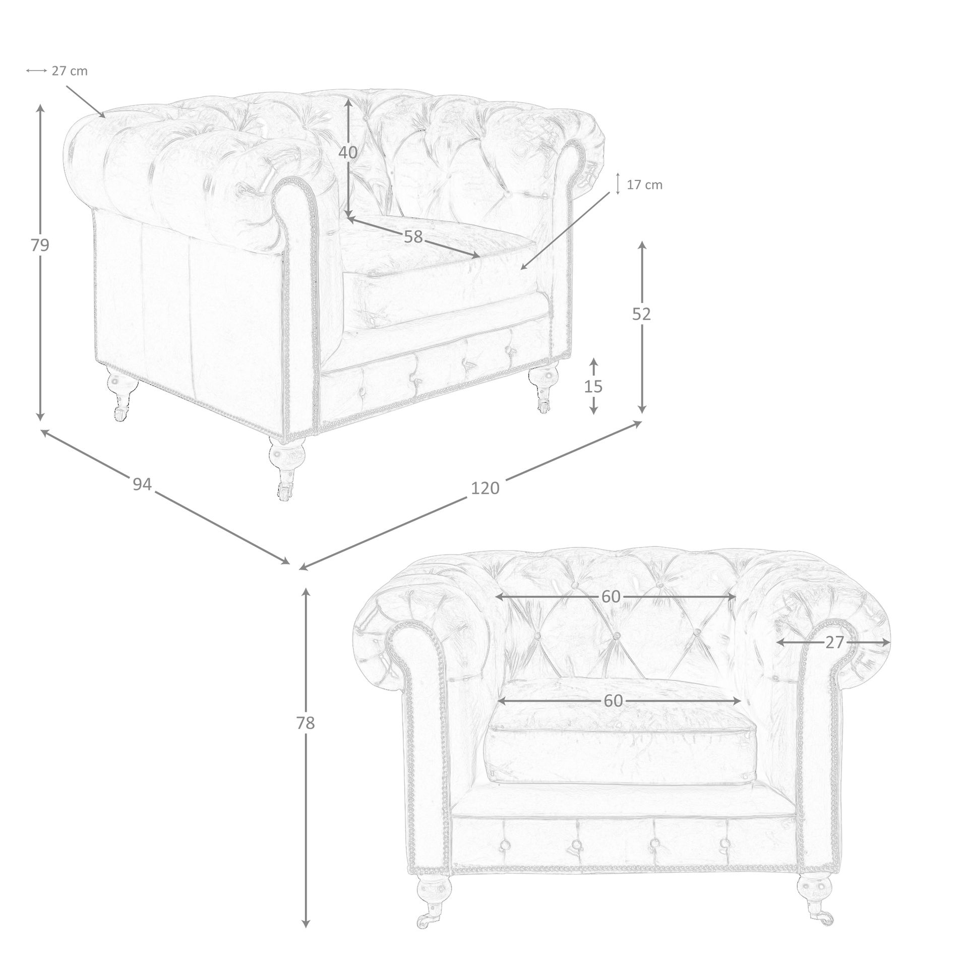 Sillón Chester piel marrón coñac | – Tapizado del asiento: Piel de origen vacuno de 1.25 mm de espesor- Tapizado del respaldo: Piel de origen vacuno de 1.25 mm de espesor- Composición del tapizado: 100% Piel- Material del relleno: Espuma de poliuretano de 30kg/m3 de densidad- Material de las patas: Madera maciza tintada en color caoba